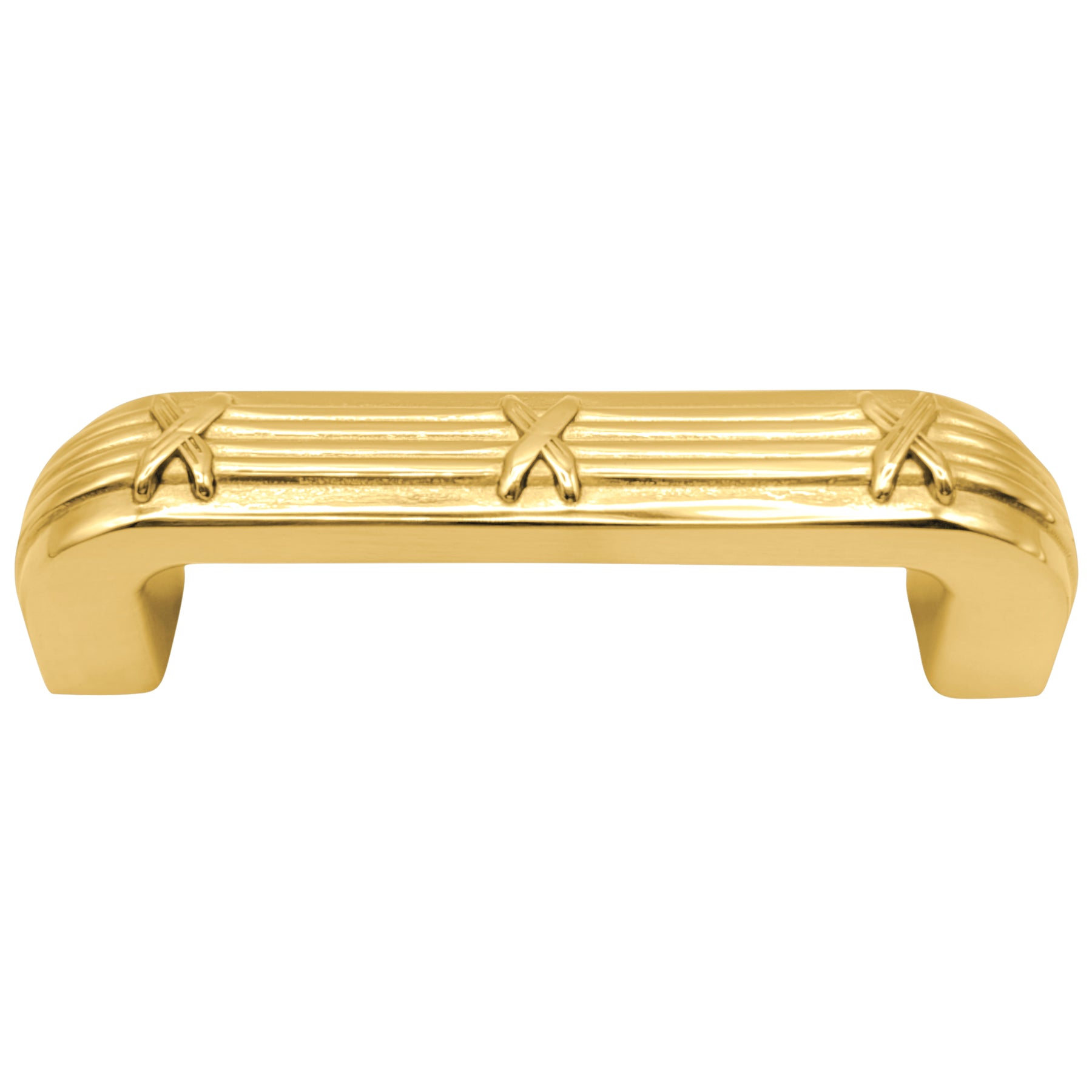 The Ribbon & Reed Trellis Cabinet Pull showcases elegant detailing with its banded design accented by classic ribbon and reed motifs. Crafted from solid brass, this pull offers durability along with timeless style. Perfect for pairing with the Ribbon & Reed Trellis Knob, it brings a refined, cohesive look to cabinets, drawers, or furniture in any finish.