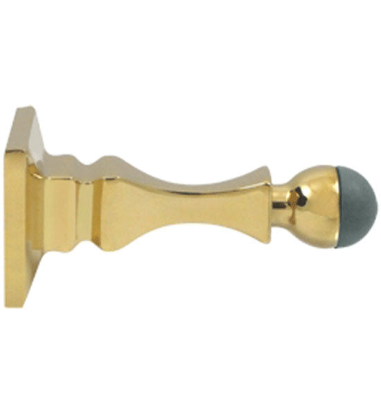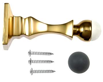 This baseboard door stop measures approximately 3 1/2 inches long and comes with a concealed screw mounting for easy installation. Comes with interchangeable white and dark gray rubber tips and all mounting hardware. Available in a variety of finishes including Polished Brass, Antique Brass, Lifetime Polished Brass, Satin Nickel, Antique Nickel, Brushed Chrome, Flat Black, and Oil Rubbed Bronze. This particular product has a lead time of approximately 2 to 3 business days.