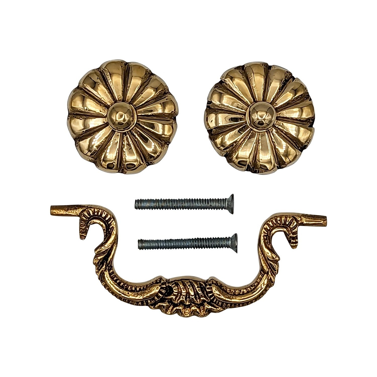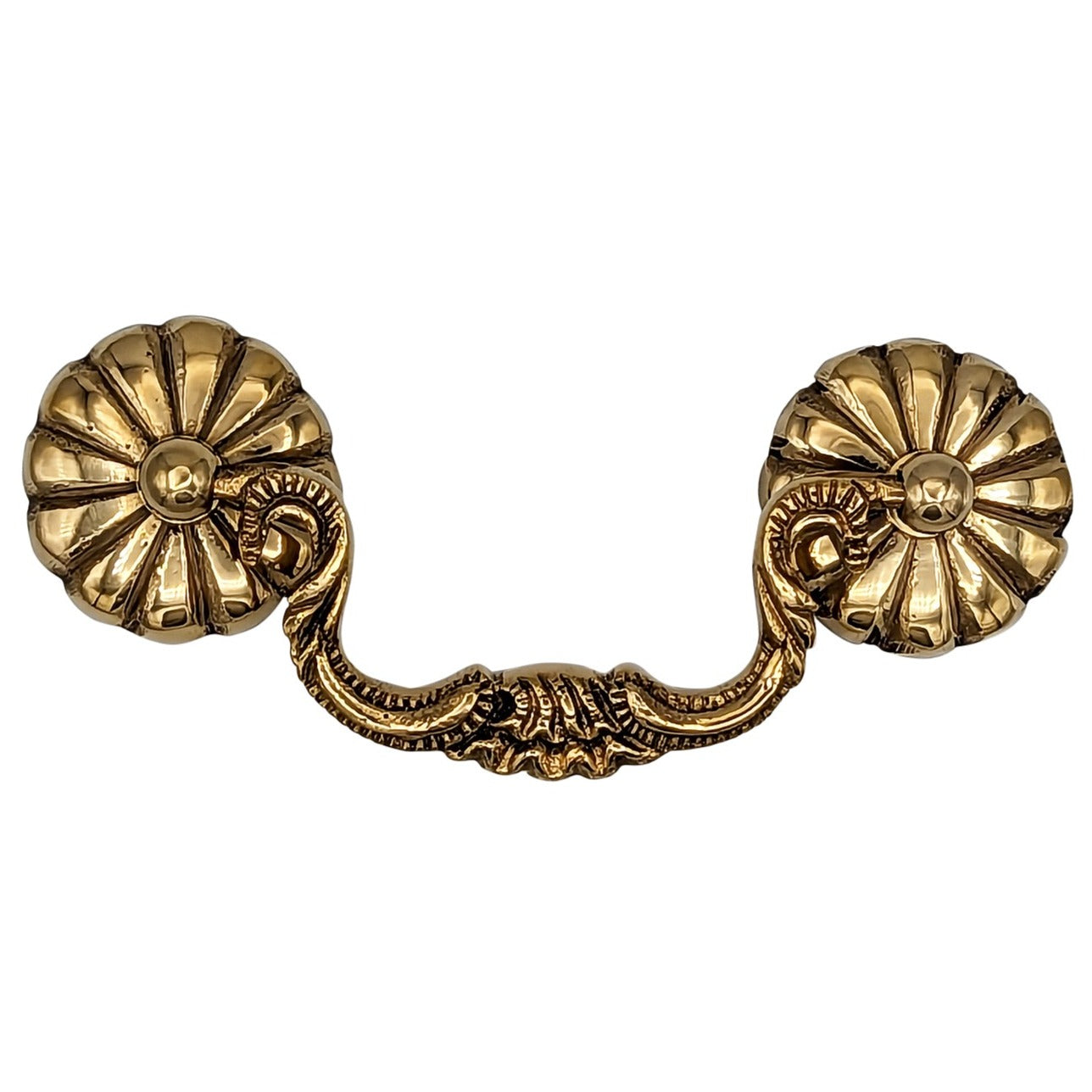This bail pull measures 4 1/2 inches wide by 1 inch tall with a 1 inch projection and a 1 1/2 inch drop. This bail pull comes complete with all mounting hardware and features several fine finishes.