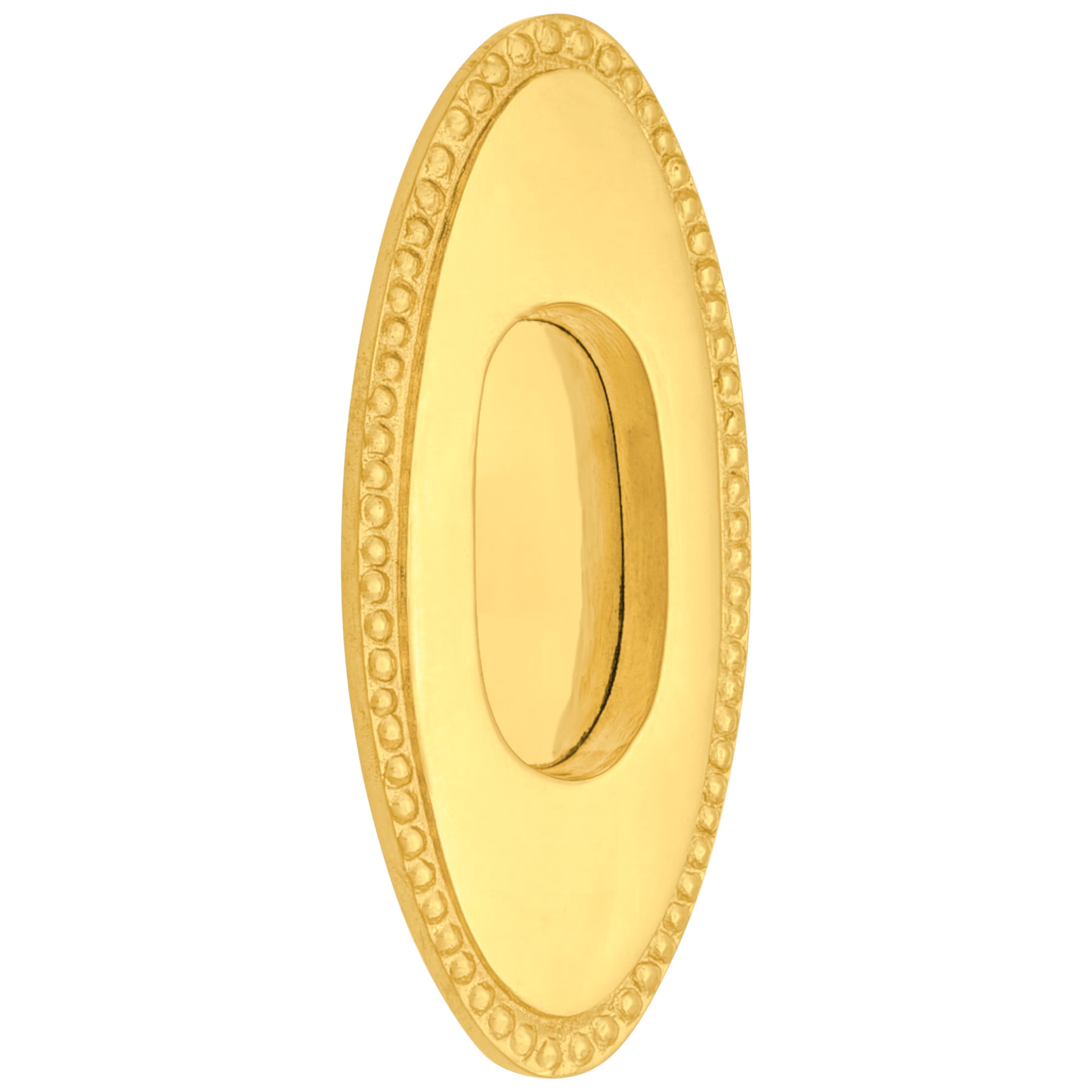 The Beaded Signature Flush pull features a timeless silhouette accented by a raised beaded pattern around its edge. Crafted from solid brass, this flush pull blends durability with refined style, making it a versatile choice for pocket doors, furniture, or cabinets. Pair it with the coordinating Beaded Signature Pull and Ring Pull to create a cohesive, elegant look throughout your space.