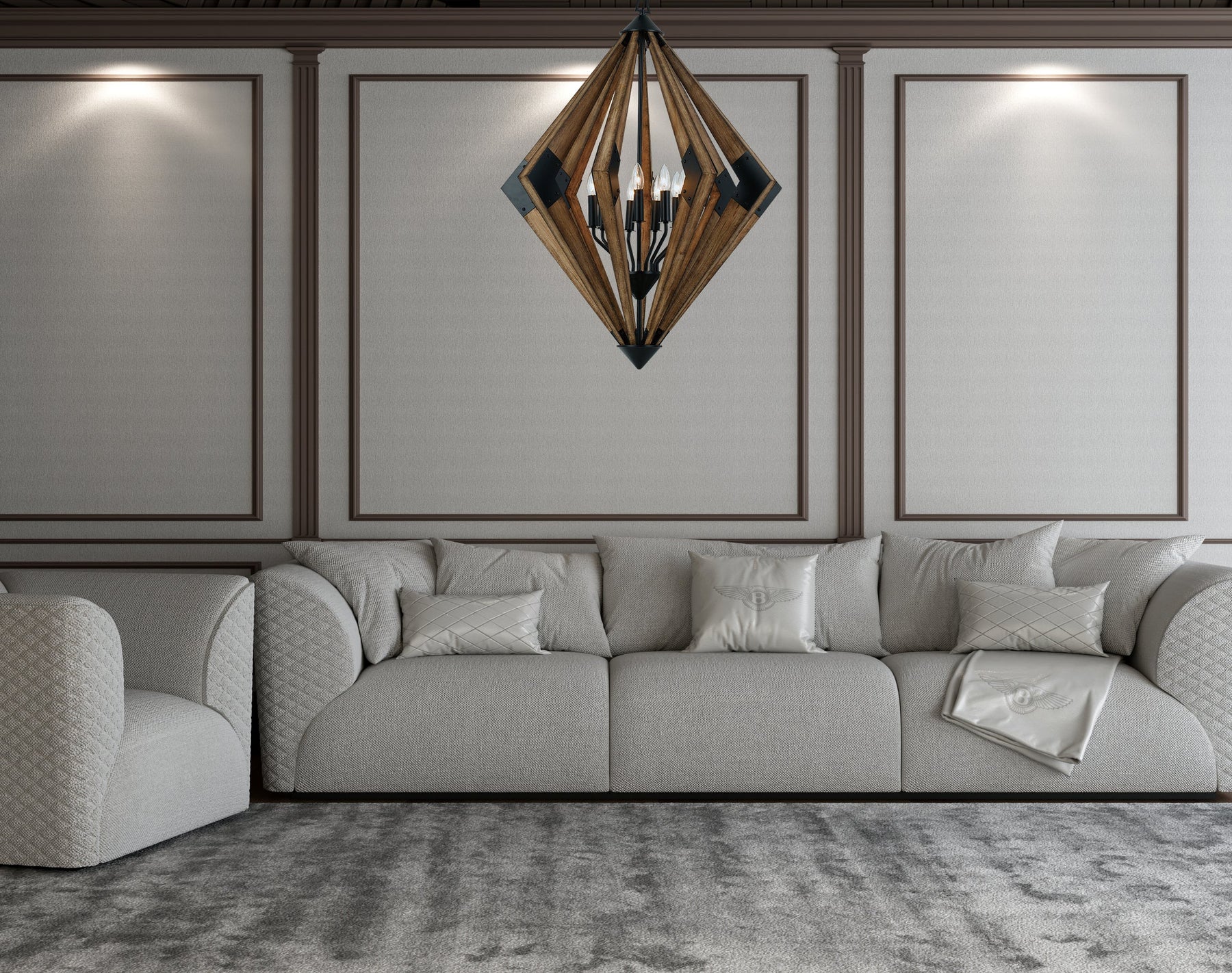 ##Antique Hardware## 60W X 9 AREZZO WOOD CHANDELIER