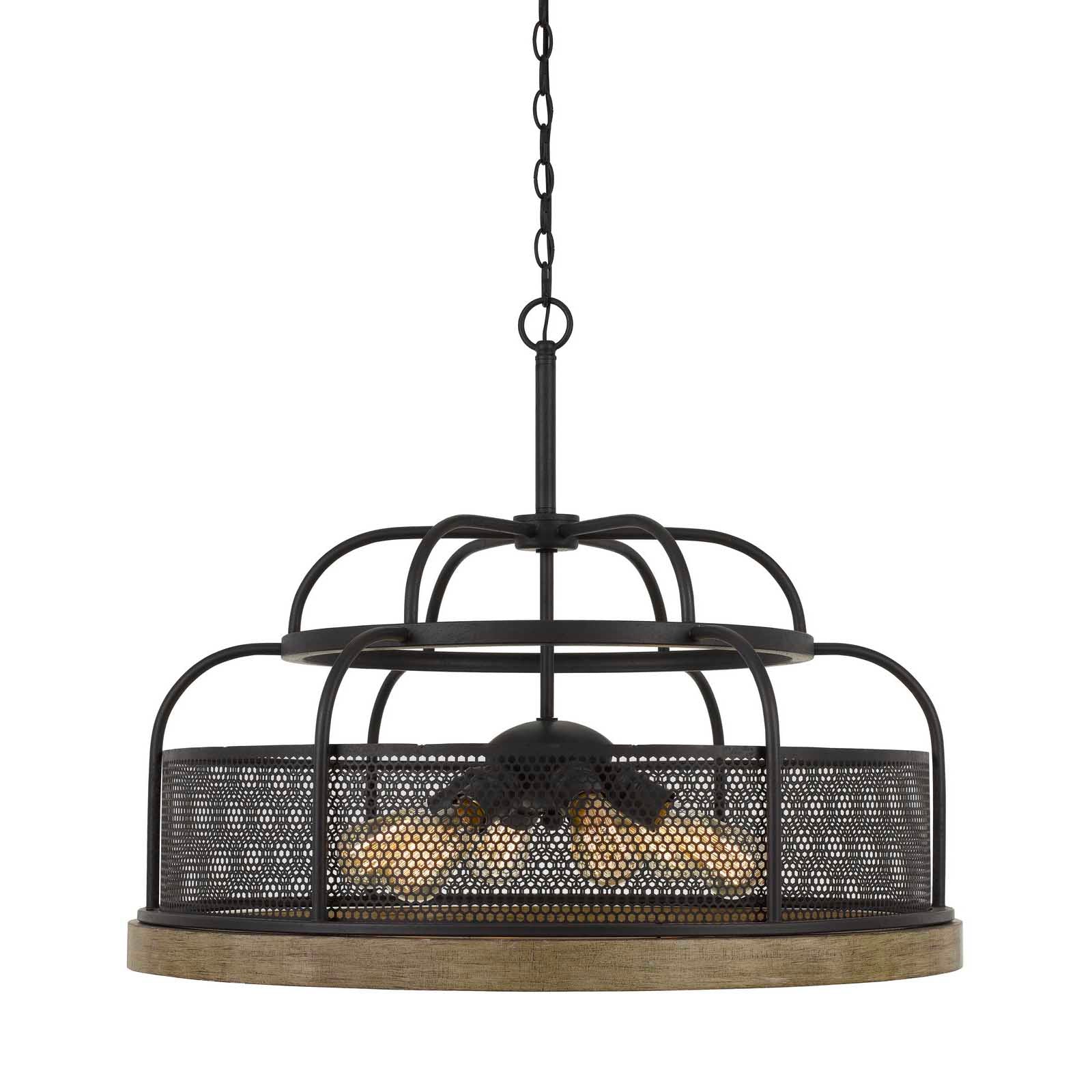 The Akaki 60W X 6 Metal/Pine Wood Chandelier (Product No. FX-3706-6) is a striking lighting fixture that marries durability and elegance. Constructed with a robust combination of pine wood and iron, this chandelier features a stylish mesh shade pattern and comes with a 5\