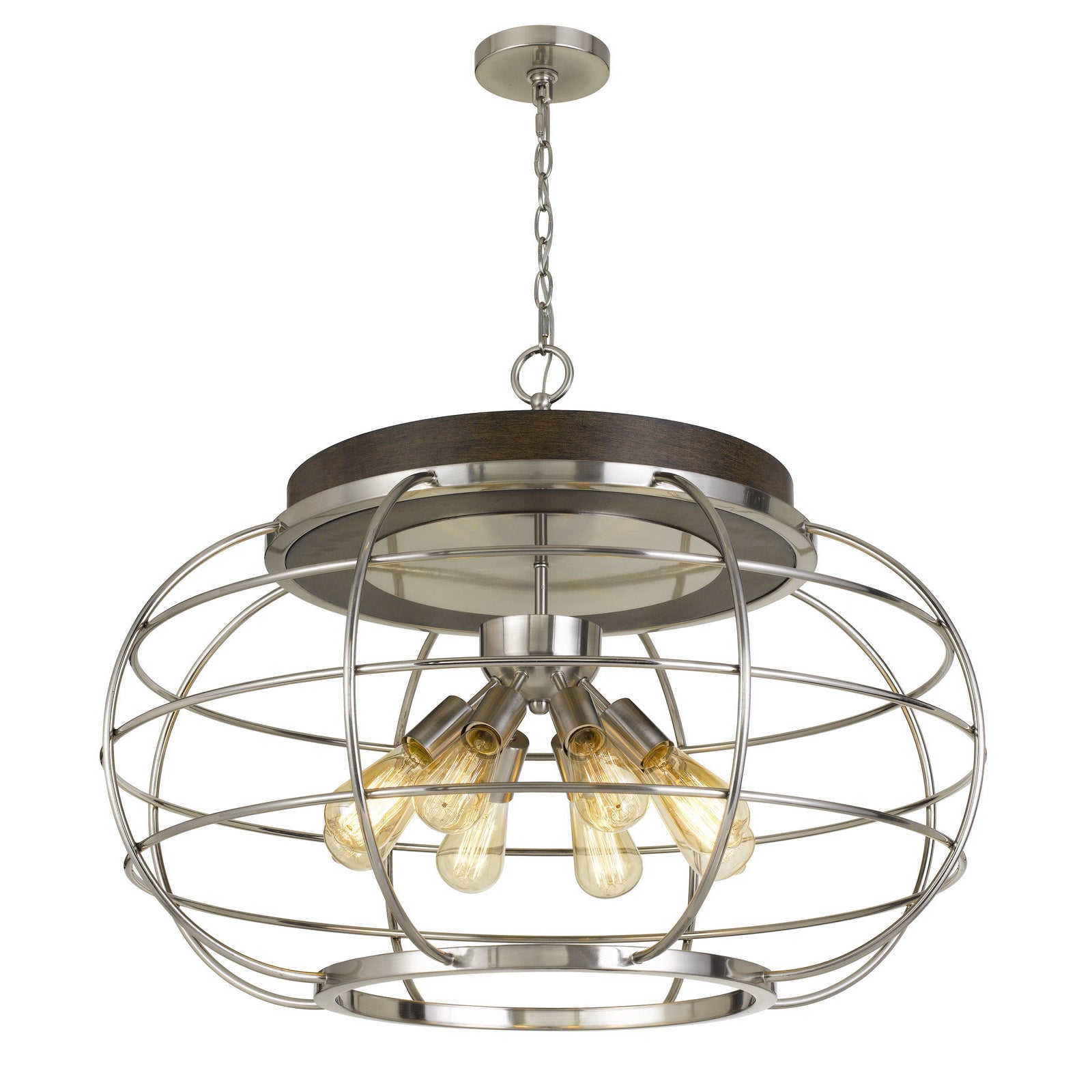 The Liberty Metal Chandelier (Product No. FX-3719-8) features a durable metal construction adorned with a stylish wood accent rim. This stunning chandelier, suitable for a variety of decor styles, comes with an elegant oval grill shade. It has a substantial height of 25 inches and a brushed steel/wood finish, complemented by a 5.13-inch diameter canopy and a 6-foot metal chain for adjustable hanging. Capable of accommodating up to eight E26 base bulbs (not included) with a maximum wattage of 60W each, this chandelier not only illuminates your space effectively but also adds a touch of sophistication to your home. Minor assembly is required, and it comes with a one-year warranty, ensuring your investment is protected.