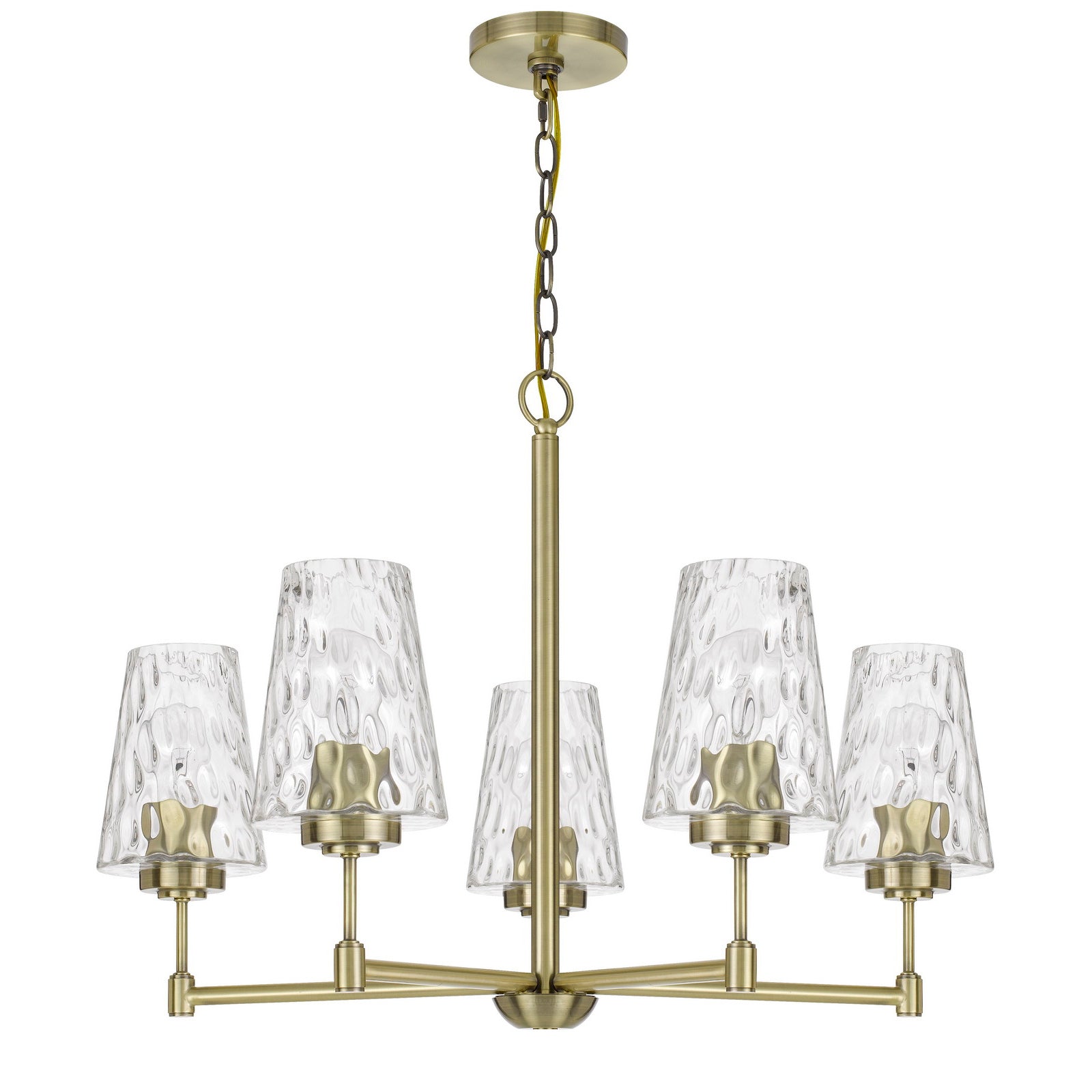 Antique Hardware 60W X 5 CRESTWOOD METAL CHANDELIER WITH TEXTURED GLASS SHADES Chandelier