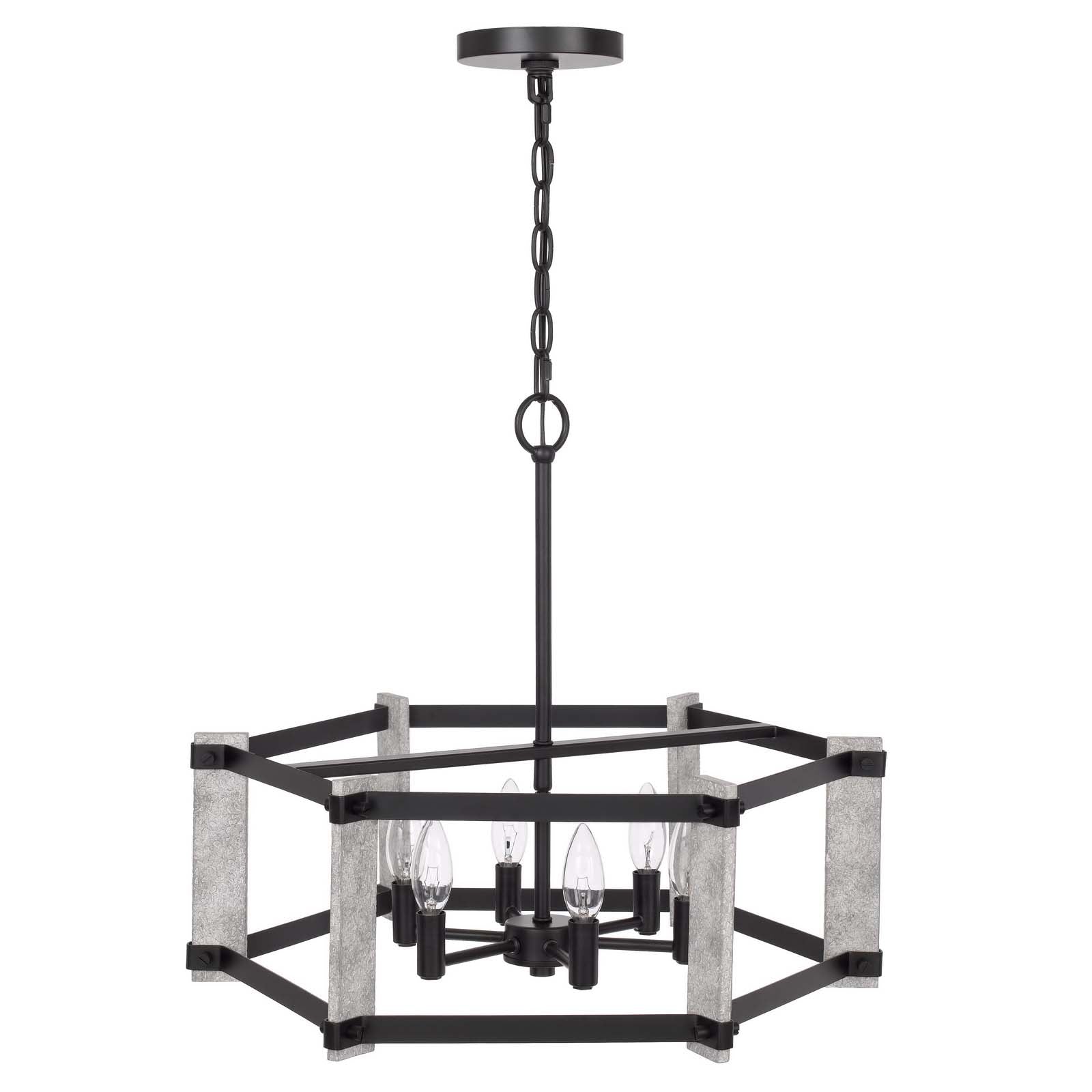 The FX-3767-6 Rutland hammered metal chandelier is a stunning addition to any space, showcasing a unique hexagon cage design with a vintage white hand-applied finish and a hammered metal effect in a fossil/black color scheme. This versatile chandelier, perfect for dining rooms, features six E12 base light bulbs with a total wattage of 360W (60W each). Standing at 18.5 inches high, it brings an industrial yet rustic charm to your decor. The durable metal construction ensures longevity, while its stylish design makes it a focal point in any room.