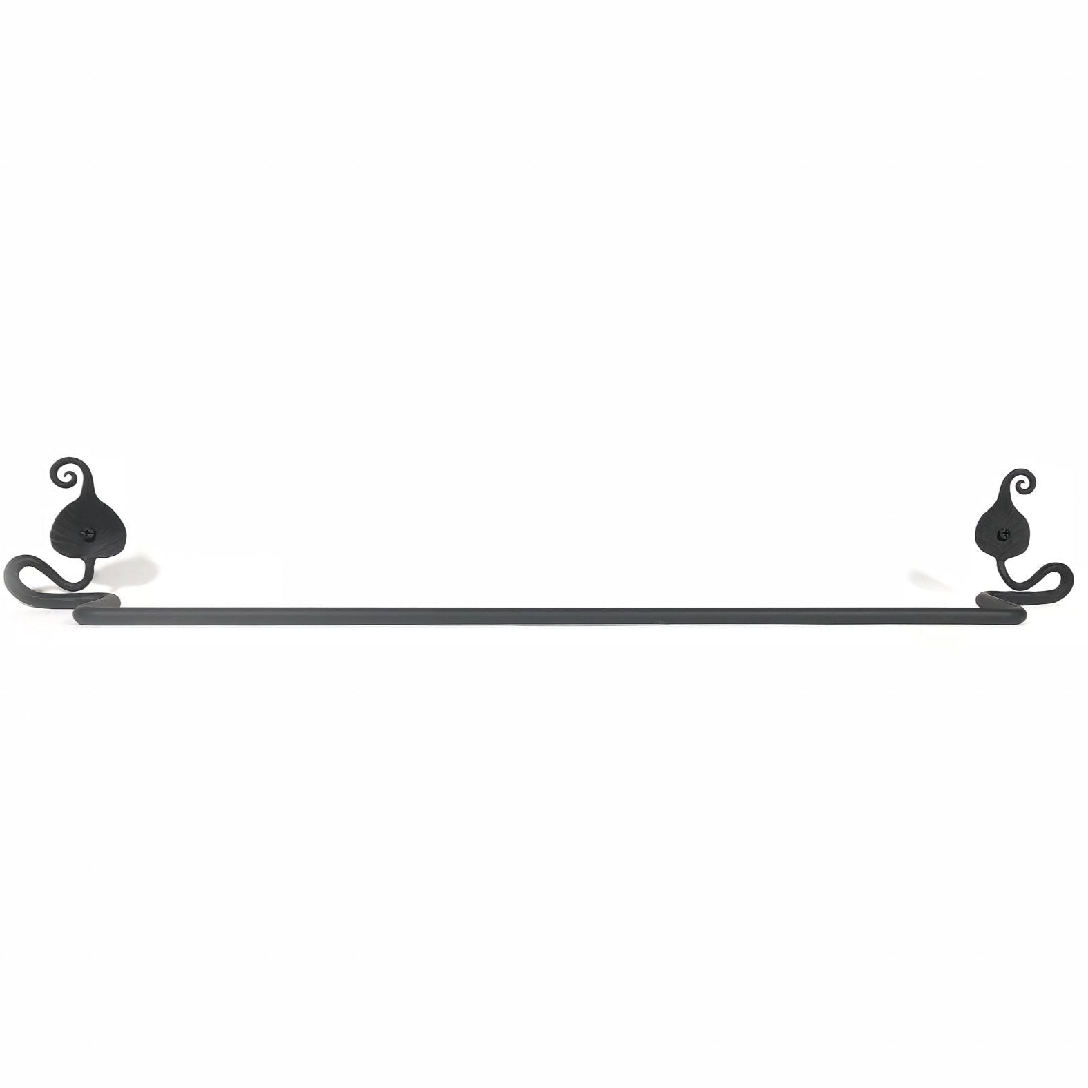 Enhance your space with the timeless look of this Hand-Forged Leaf Towel Bar in an Iron Finish. Standing 3" tall with a 20" bar (25" overall length) and a 4" projection, it combines strength and style. Includes mounting hardware for easy installation. The average lead time for this product is approximately 3-5 business days.