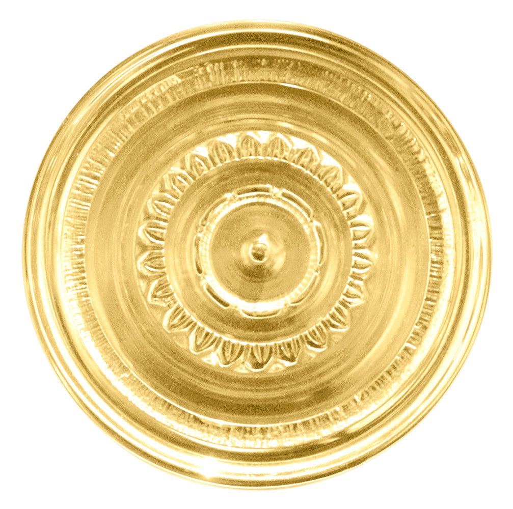 This knob was designed for a French style door and is much larger than your typical door knob. It measures 3 1/2 inches in diameter and projects 1 5/8 inches. Back plate is 2 1/8 inches diameter. It is available in several finishes including polished brass, antique brass and Black Bronze and comes complete with mounting hardware. The average lead time for this knob is approximately 1 to 2 business days.