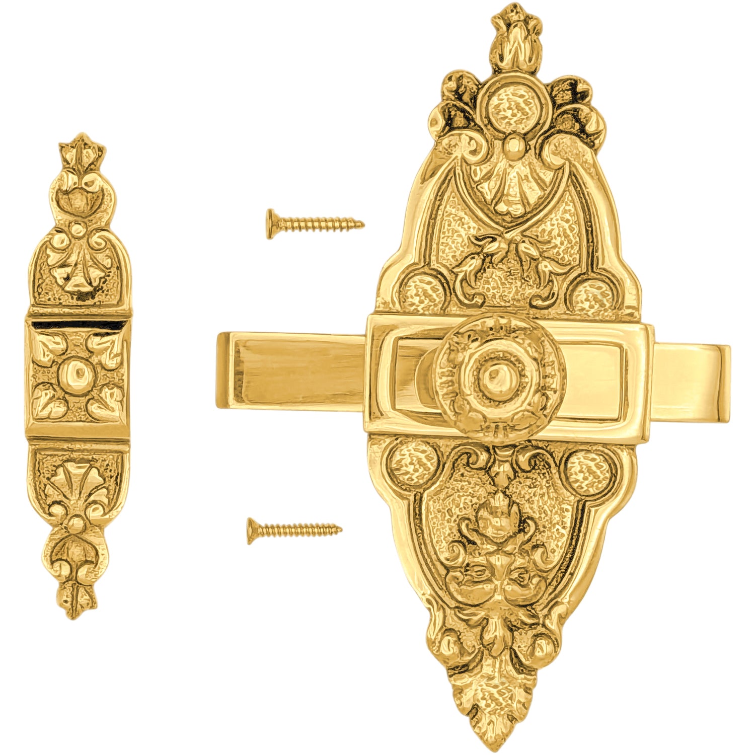 Comes complete with two pieces. Long piece measures 2 1/8 inch wide and 5 1/2 inch tall (does not include slide bolt measurement) with a projection of 1 1/2 inch. Smaller piece measures 3/4 inch wide and 3 1/2 inch tall. This particular product has a lead time of approximately 1 to 2 business days.