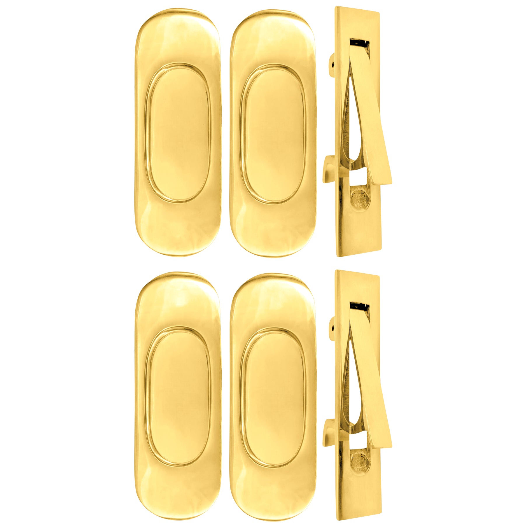 The flush pull measures approximately 5 inches tall by 1 2/5 inch wide and the edge pull measures approximately 5 inches tall by 1 inch wide. The set is crafted from solid brass, this hardware piece comes complete with complementary screws, ensuring easy installation with all the necessary mounting hardware included. For a flush finish, routing may be necessary.