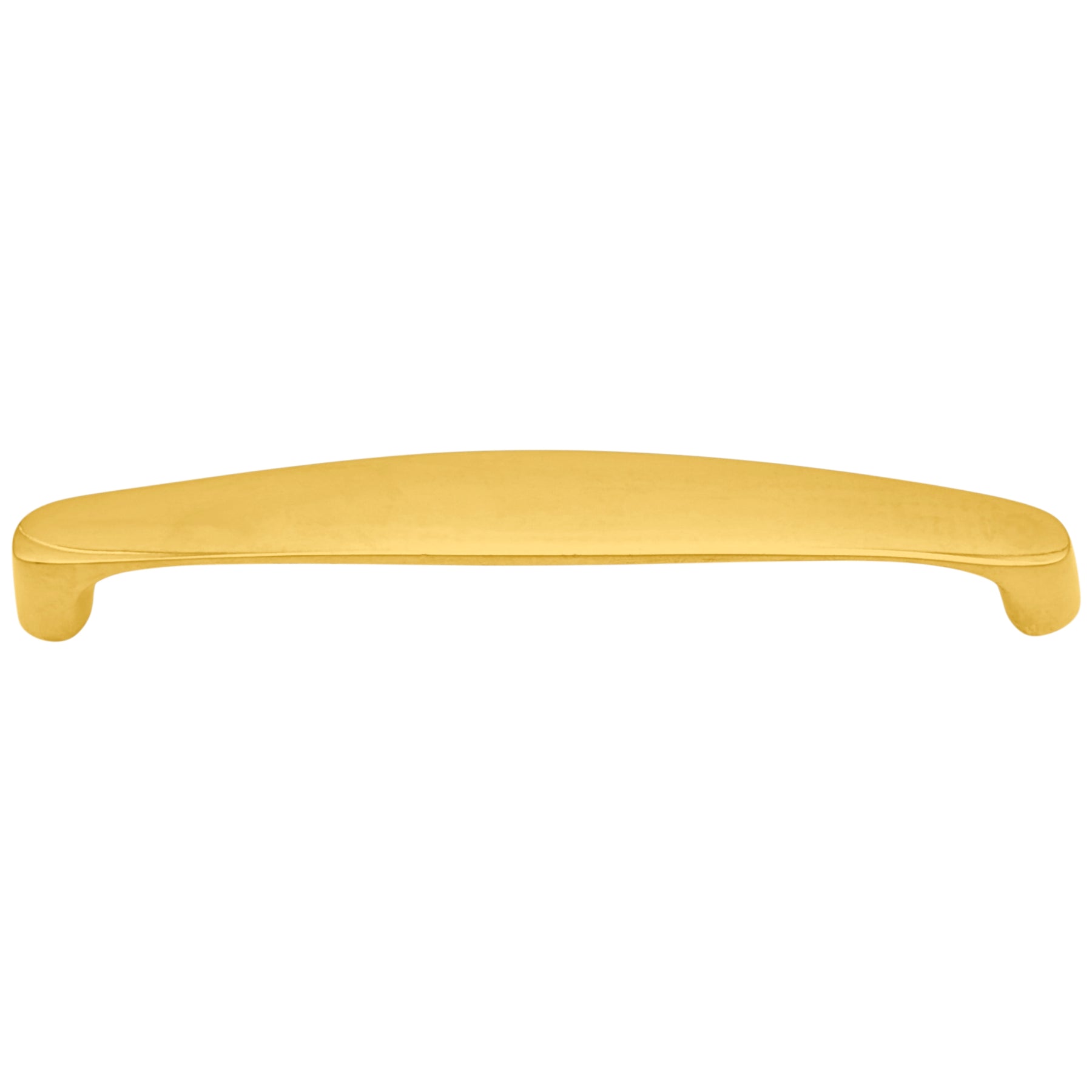 Measures 5 1/2 inch long with 5 inch center-to-center mounting distance (5.00 c-c) with a projection of 3/4 inch. Coordinating knob available. This pull comes complete with mounting hardware, and it is available in several finishes.