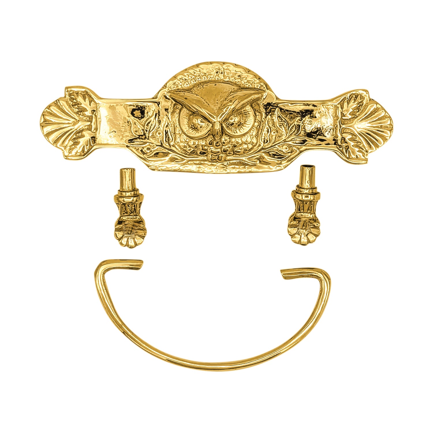 This beautiful bail pull will add a touch of whimsy and class with its stately Art Deco or Victorian design. This piece measures 5 inches at its widest and 1 5/8 inches tall at its base. It has a center-to-center mounting of 3.00 inches and a projection of 2 inches. It's available in several different finishes and comes complete with mounting hardware. Each of these pulls are hand made.