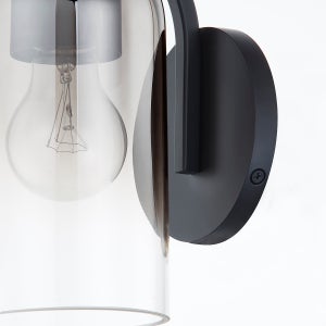 The Maverick Wall Sconce by Troy Lighting offers a sleek and contemporary design, perfect for enhancing any modern space. This elegant fixture features a durable glass shade and requires one E26 medium base bulb (not included) with a maximum wattage of 40W. With dimensions of 4.25 inches in width, 8.25 inches in height, and an extension of 5.50 inches, it seamlessly fits into various locations. Crafted with a soft black finish, this sconce is also UL Damp rated, making it a suitable lighting option for areas exposed to moisture.