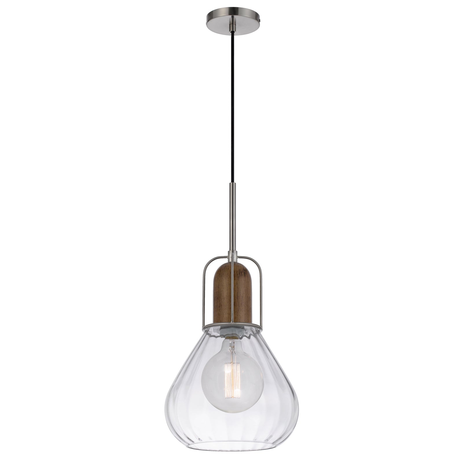 The FX-3803-1 Rochelle Mini Glass Pendant Light offers a striking blend of durability and style with its metal and rubber wood construction. Featuring a 60W capacity and accommodating an E26 bulb (not included), this pendant is perfect for enhancing any space. It boasts an adjustable height with a 6-foot cord, allowing for versatile installation options. The clear handblown glass shade complements the wooden accents beautifully, making it a captivating addition to your decor. This product ships in one carton and is backed by a one-year warranty, ensuring quality and peace of mind.