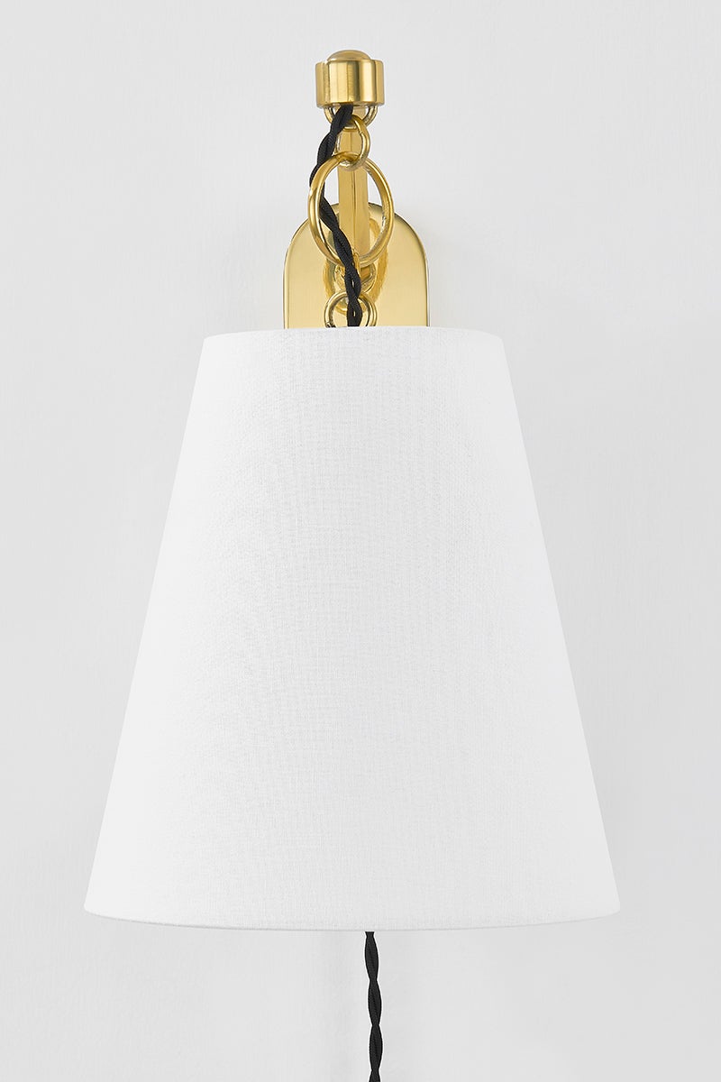 The Joan Table Lamp by Hudson Valley Lighting offers a perfect blend of elegance and functionality, measuring 9.00 inches in width and 14.75 inches in height. With a sleek linen shade and a warm Aged Brass finish, this lamp enhances any room's ambiance. It features a single E26 medium base socket, compatible with a recommended A19 bulb (not included), allowing for a maximum wattage of 15.00. With an extension of 11.50 inches and a height to the center of 6.25 inches, the Joan Table Lamp is versatile enough for various settings while being ETL Damp rated, making it a practical choice for humid environments.