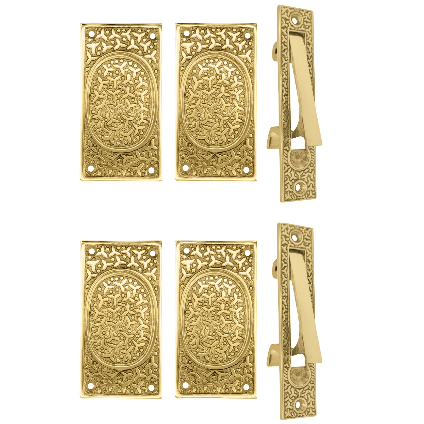 The Rice Pattern is a distinctive and ornate pattern that gained popularity during the 19th century. This intricate pattern features a design reminiscent of grains of rice originally made by Yale and Town of Stamford, Connecticut. The solid brass construction not only ensures durability but also adds a touch of timeless sophistication to your pocket door sets. With its stylized leaves and intentional breaks, this hardware seamlessly blends historical charm with contemporary functionality.