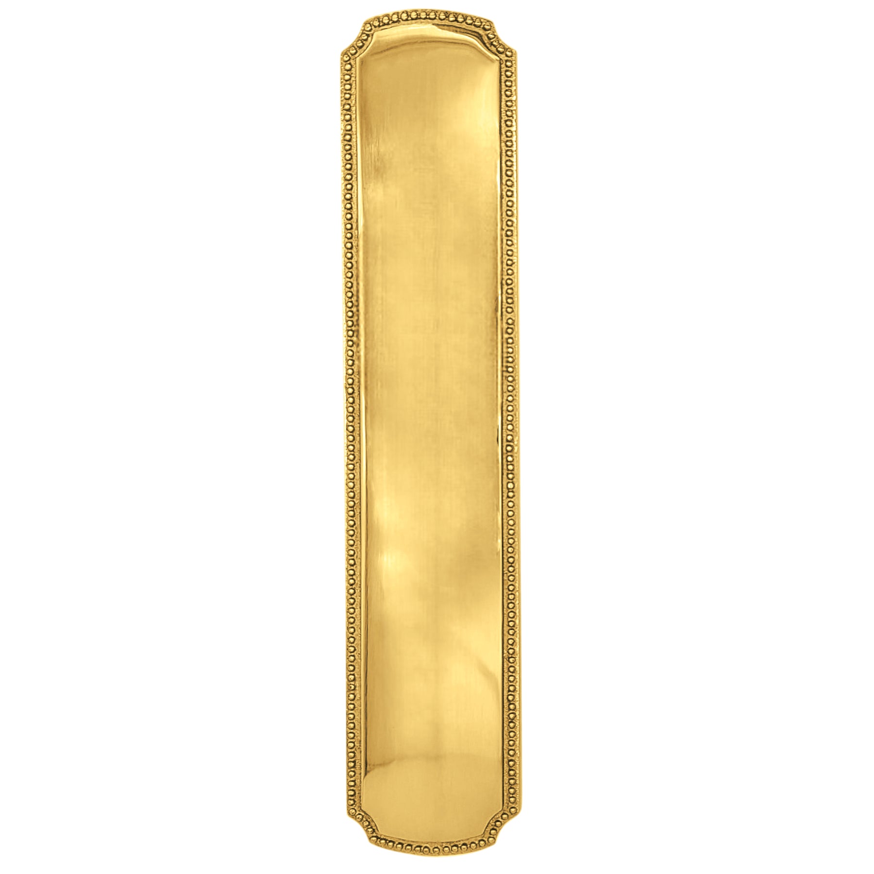 The Beaded Signature Door Push Plate showcases a classic elongated form highlighted by a raised beaded pattern along its edges. Crafted from solid brass, this push plate offers both strength and sophistication, making it an elegant choice for entry doors, interior doors, or large cabinetry. Pair it with the coordinating Beaded Signature Knob and Ring Pull to achieve a refined, cohesive look throughout your home.