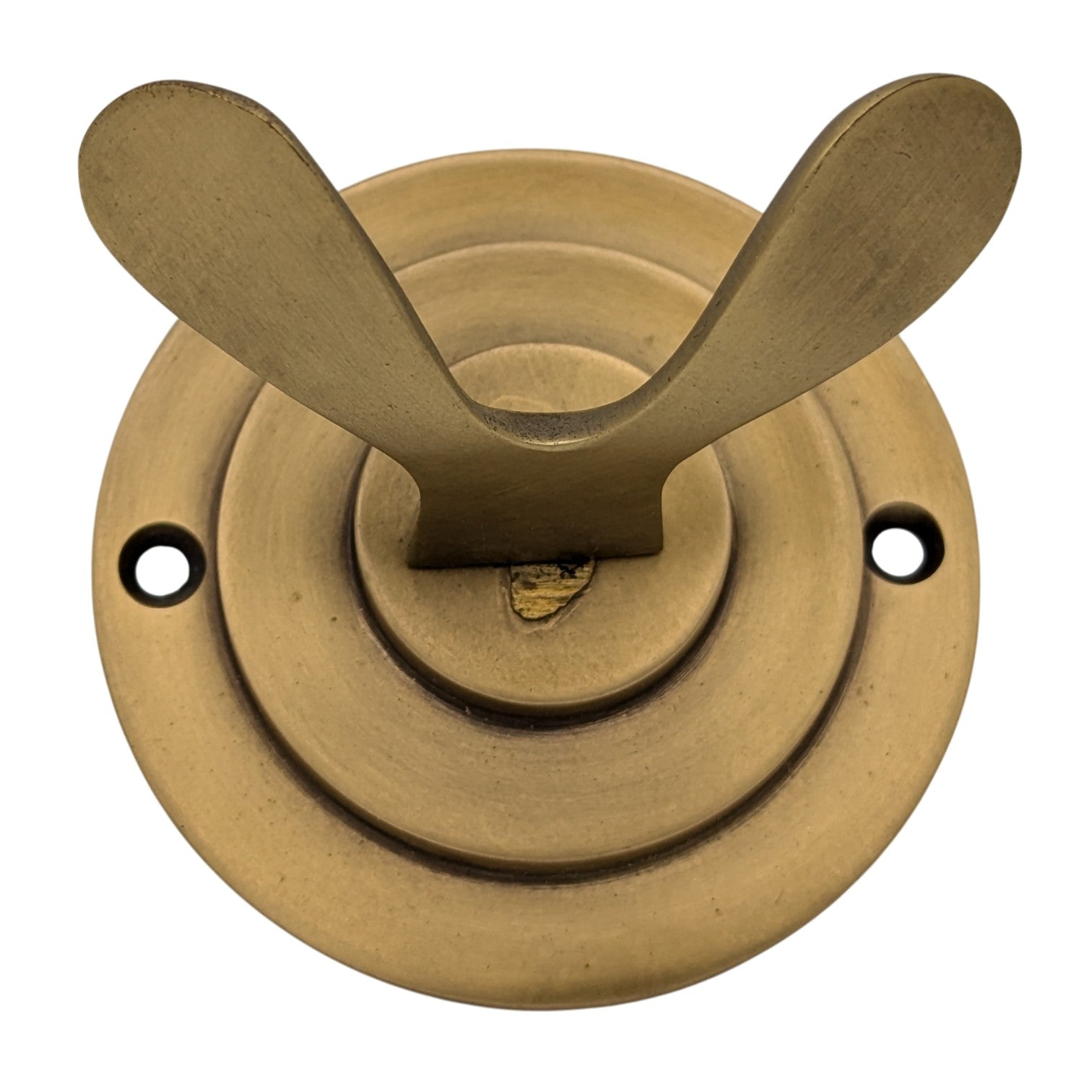 Measures approximately 2 1/2 inch tall and approximately 2 1/2 inch wide with a projection of approximately 2 1/2 inch. Made from solid brass. Comes complete with mounting hardware. The average lead time for this hook is approximately 1 to 2 business days.