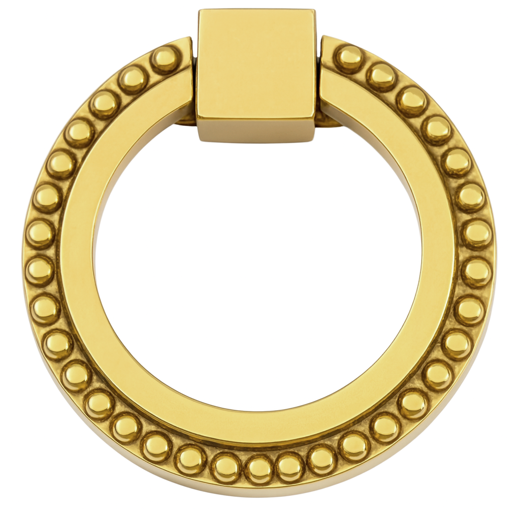Our classically designed ring pulls, cabinet ring pulls and ring style knobs are crafted to please many tastes and with designs that will endure the test of time. Styles range from Mission style, Rococo, ornate Victorian and detailed French floral designs to simple, modern smooth polished chrome. Decorative leaves, French floral, ribbon and reed, ornate shell, hammered brass, polished chrome and more insure that the you will find just the right style and design to accent your cabinets or furniture.A variety of finishes are available to add just the texture to balance with and compliment any home furnishings. Designer choices include antique brass, oil rubbed bronze, antique copper, brushed nickle and polished chrome. Our comprehensive collection includes hardware from numerous time periods and architectural styles, certain to fit any decorative need. We offer quality finishes of all types, and some of our pulls include attractive accents. You can be confident that the drop pulls, cabinet drop pulls, and drop handles that you buy from us will complement your furniture pieces and your entire room décor with style and historical accuracy.