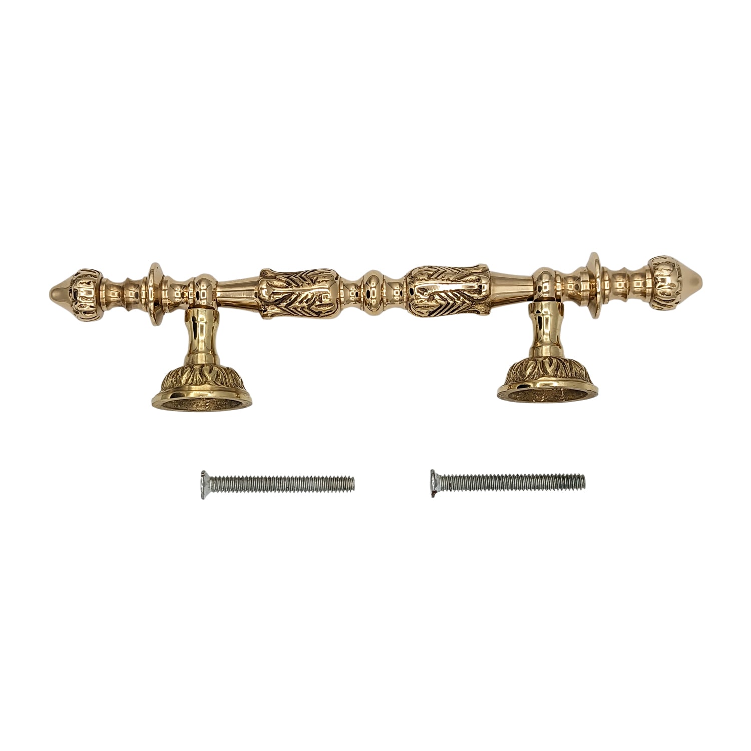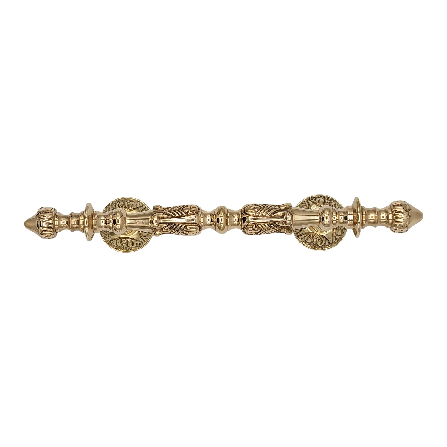 Crafted from solid brass with a polished finish, the French Empire Door Pull brings timeless sophistication to entryways. Inspired by the opulence of the French Empire era, its graceful curves and intricate detailing create a striking focal point that balances elegance with strength. More than just functional hardware, this pull adds a touch of regal character to any door.