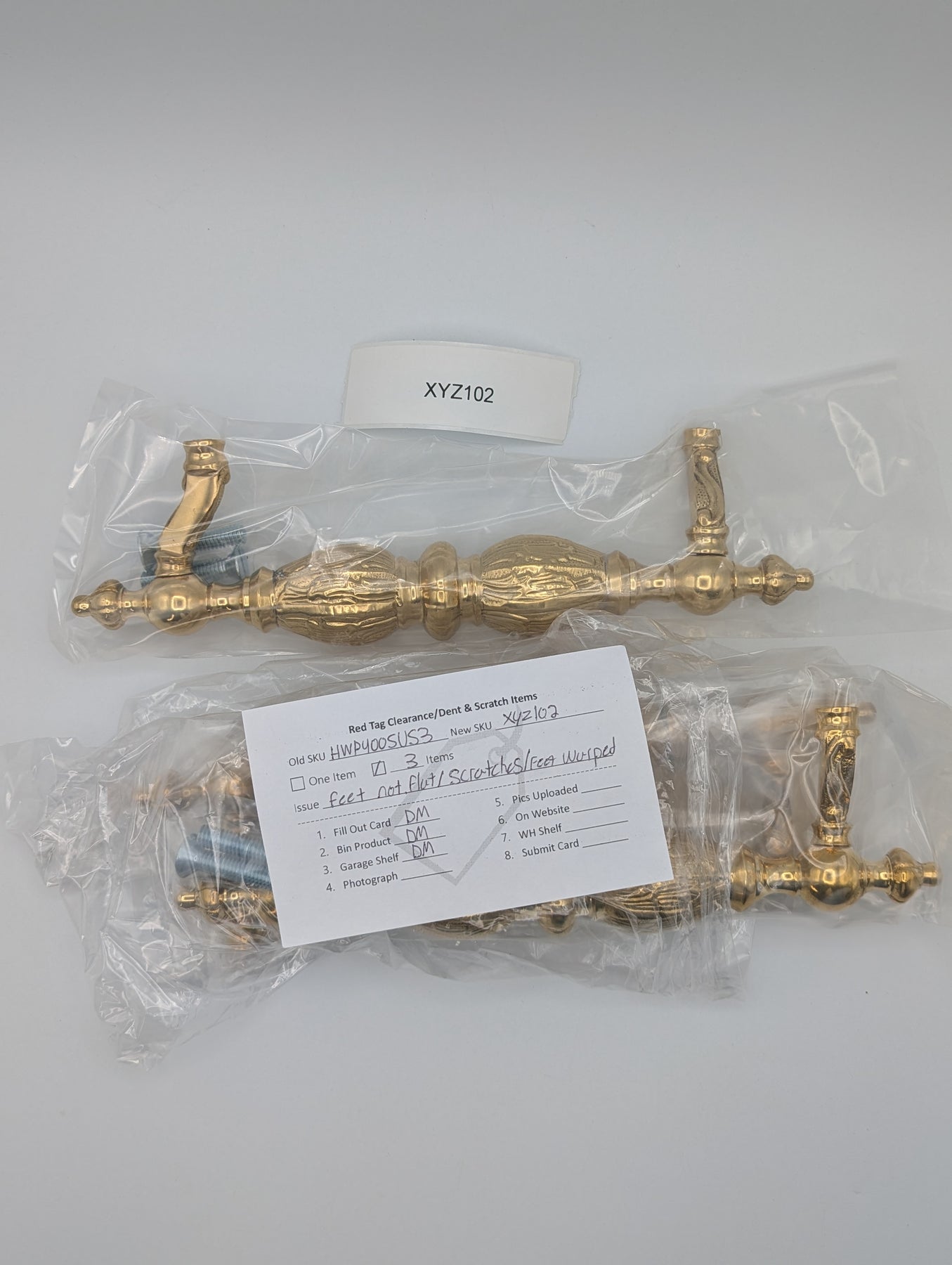 10 Inch Solid Brass Large Victorian Pull - Measures 10 inch long with a projection of 2 3/4 inch. Center to center mounting distance is 8 inch (8.00 c-c). Comes complete with mounting hardware. Available in several different finishes.