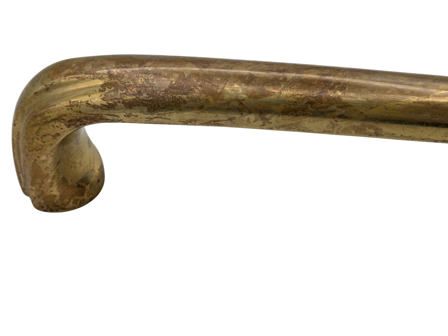 This oversize Thornton pull has an overall measurement of 17 1/2 inches with a center to center measurement of 16 inches. Crafted from solid brass and hand finished, each pull in our collection weighs approximately 2.85 lbs, ensuring a tangible sense of quality and meticulous craftsmanship. Each pull comes with 2 2.5 inch bolts with removable acorn caps.