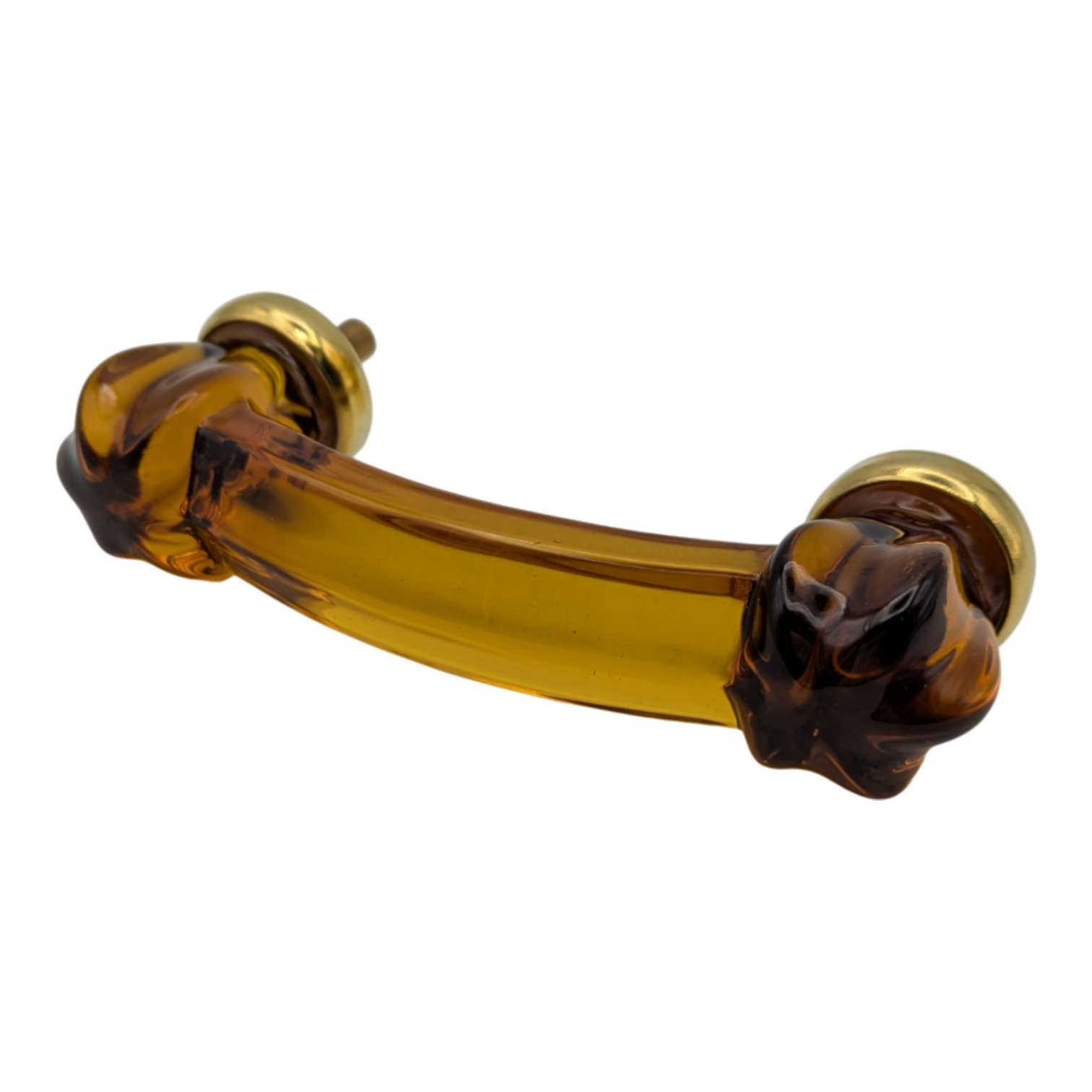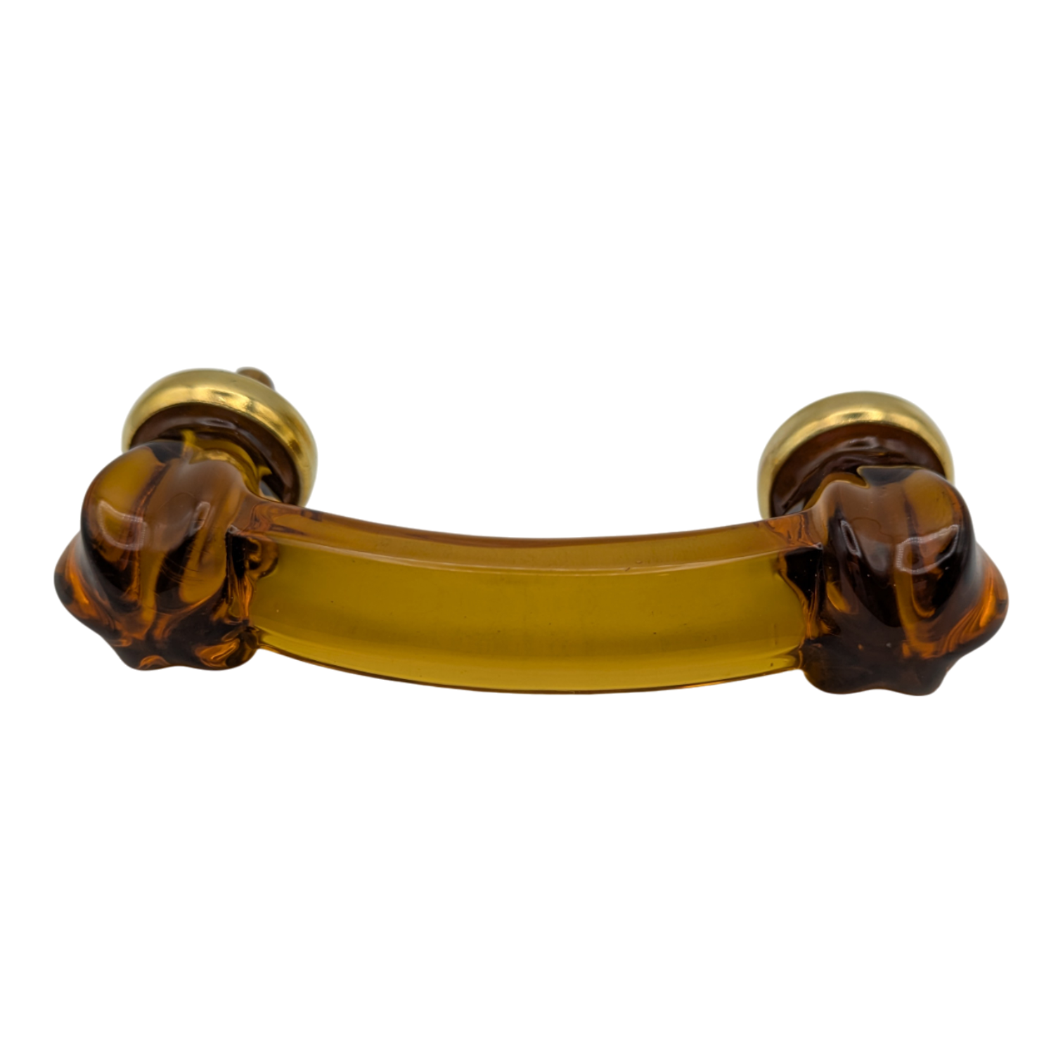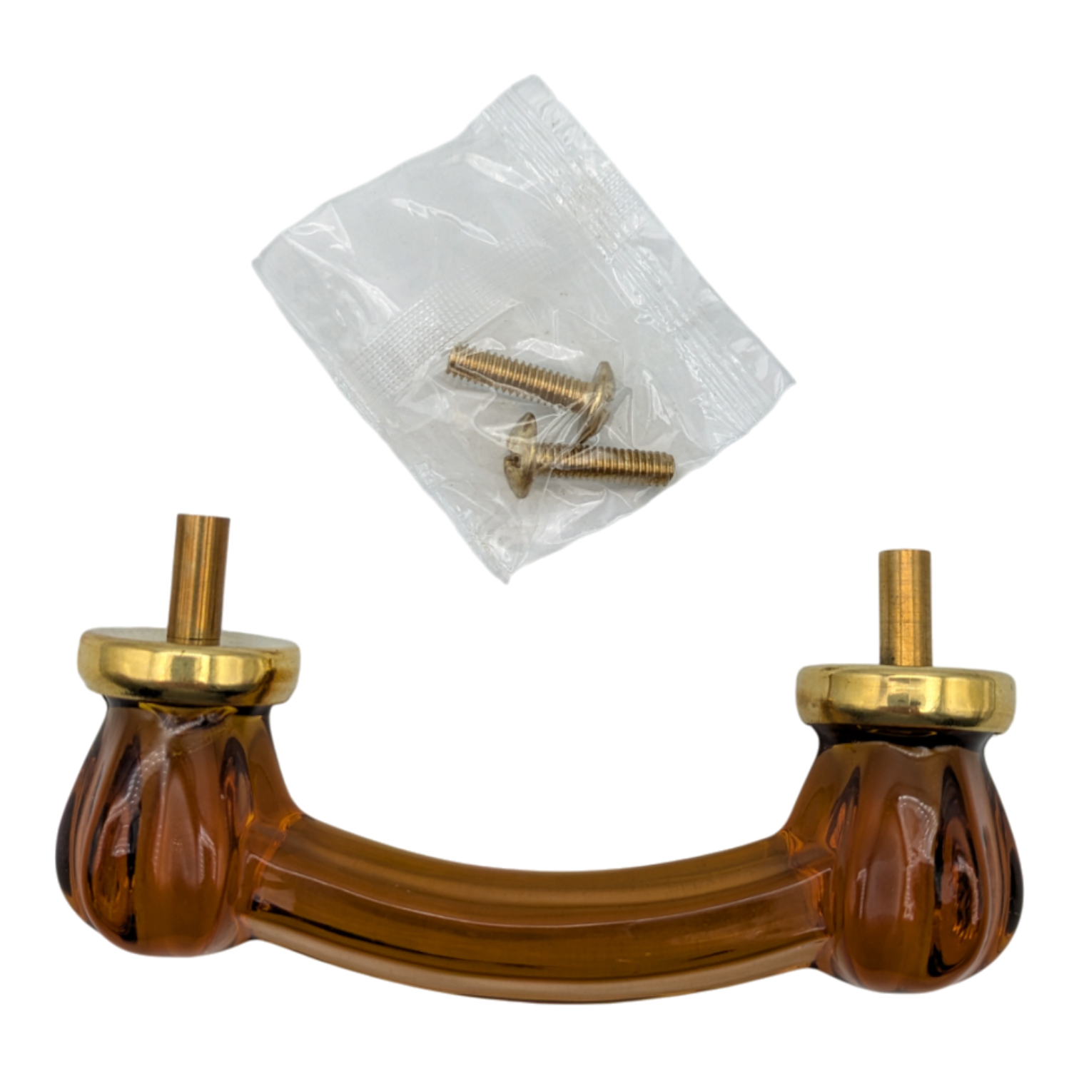This pull measures 4 inches from edge to edge with 3 inch (76.2 mm 3.00 c-c) mounting holes. Coordinating and larger knob is also available. Note: the larger knob has significantly thicker glass and, as a result, may appear slightly darker. The average lead time for this handle is approximately 4 to 7 business days.