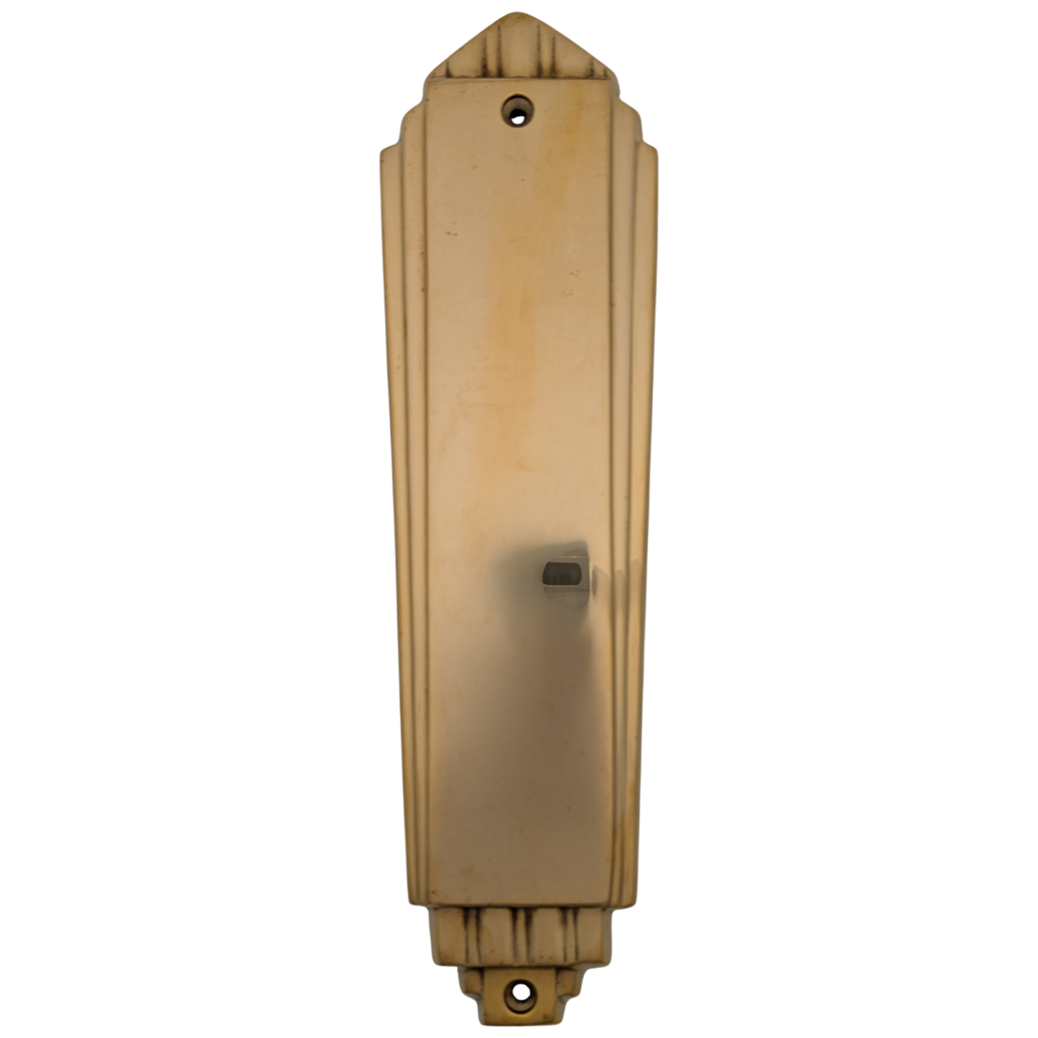 This Push Plate measures 9 inches tall and 2 5/8 inches wide. Available in several different finishes. Comes complete with the mounting hardware.