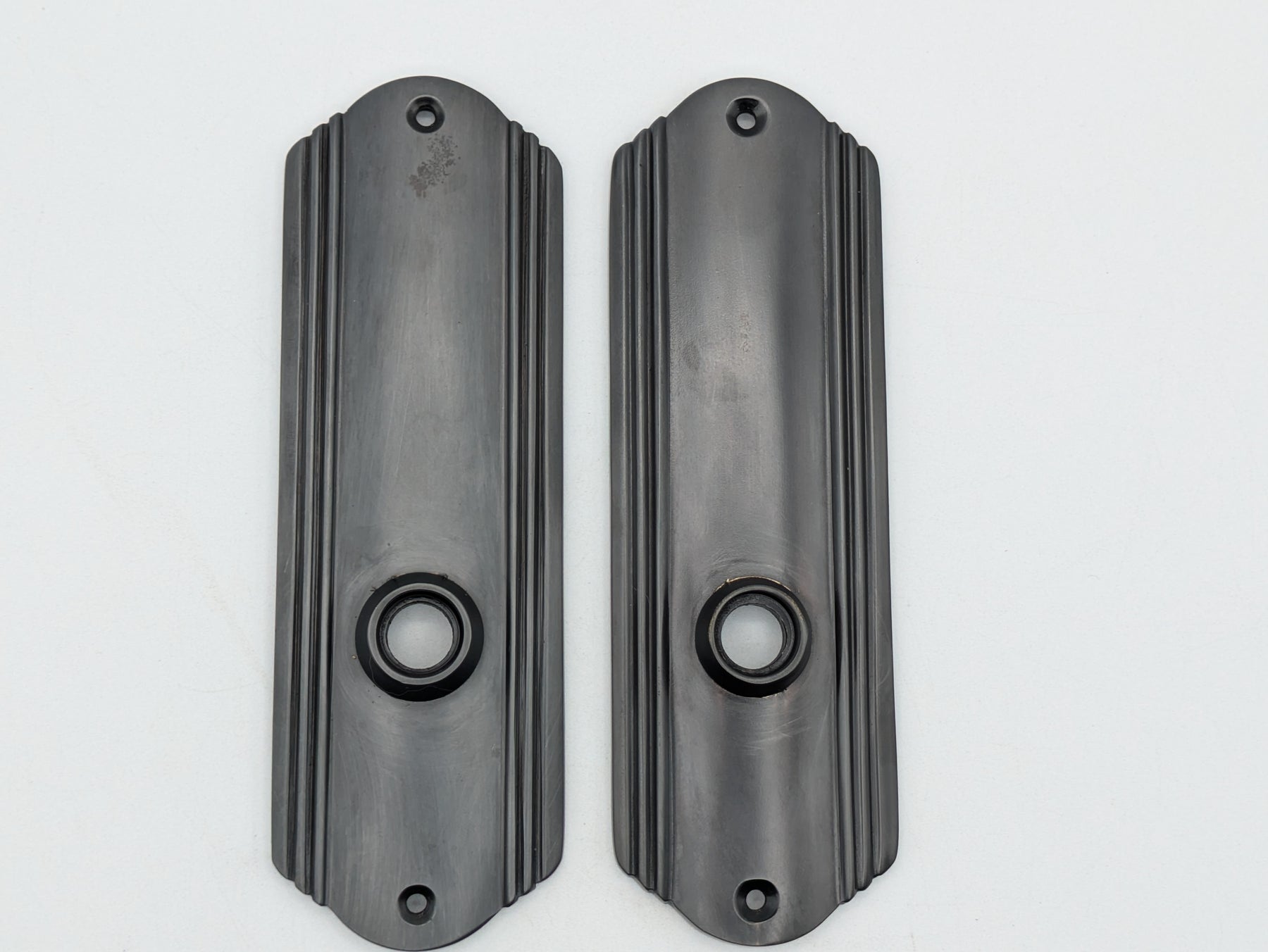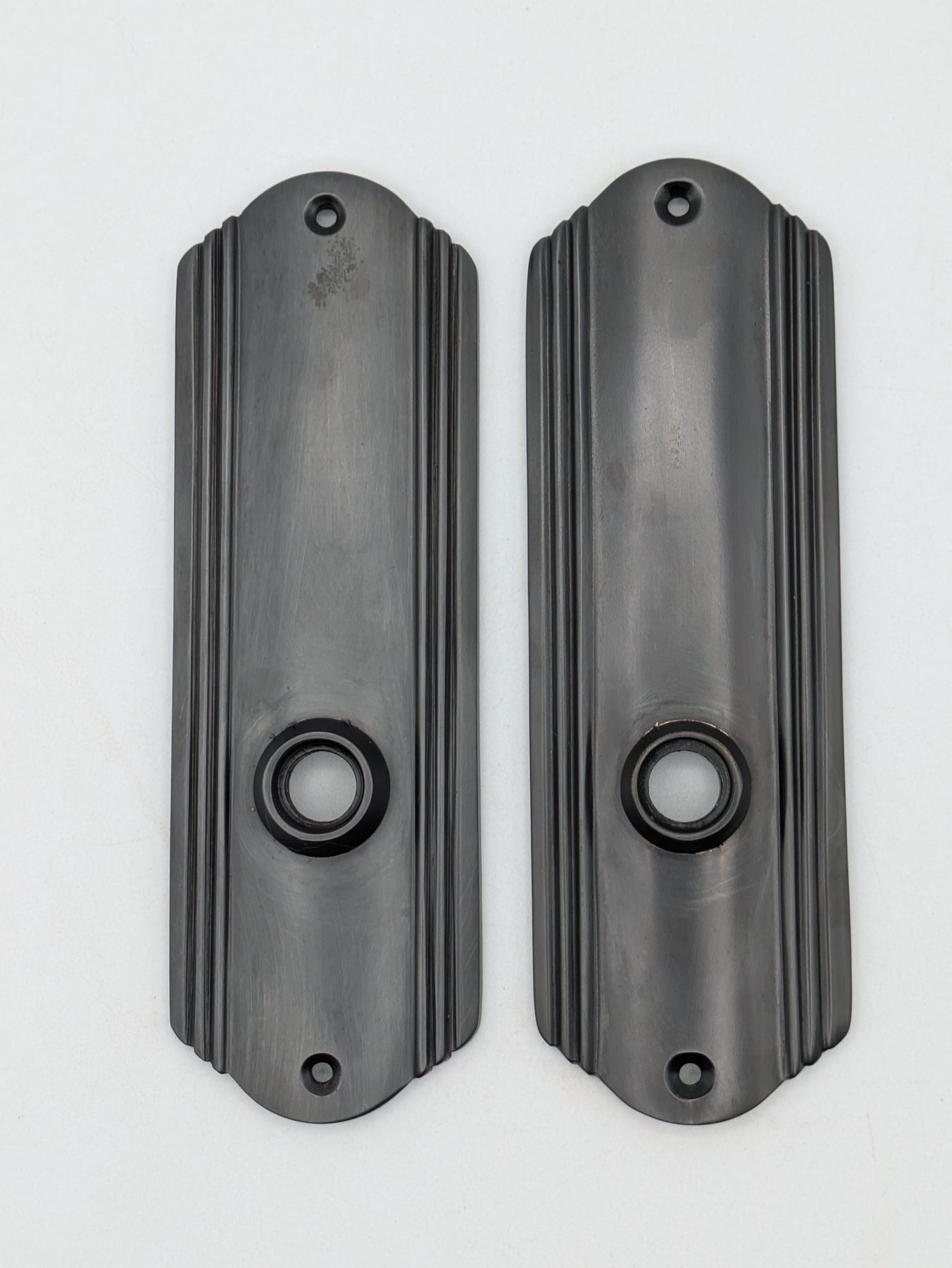These backplates measure approximately 7 inches tall by 2 1/4 inches wide. The Privacy Rosette will have an additional hole for the privacy pin (not included). Sold individually.