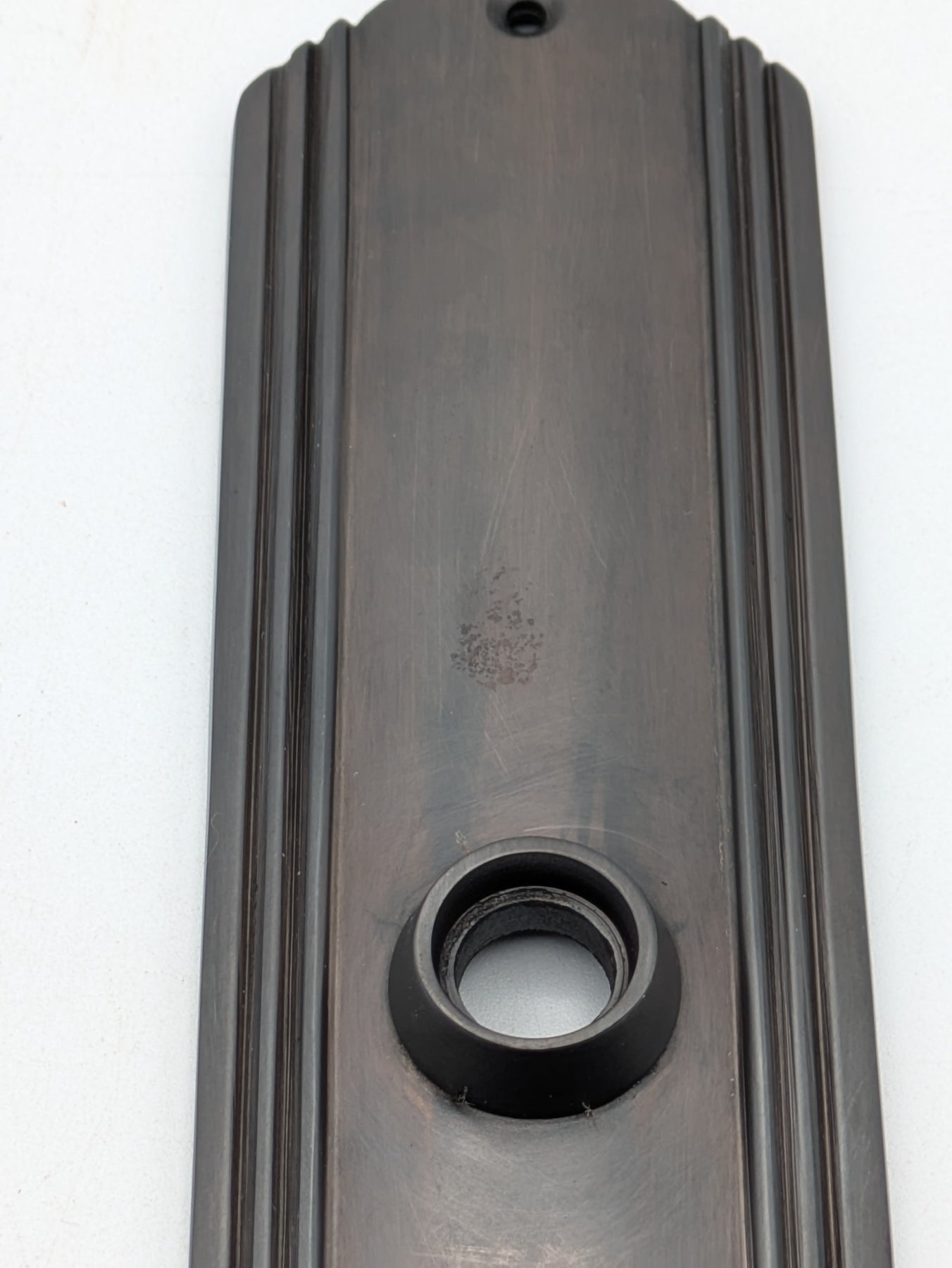 These backplates measure approximately 7 inches tall by 2 1/4 inches wide. The Privacy Rosette will have an additional hole for the privacy pin (not included). Sold individually.