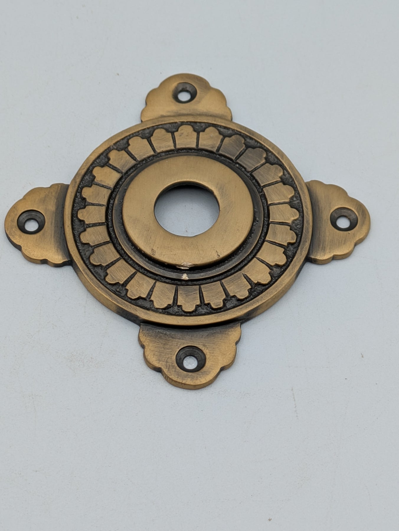 These rosette plates measure approximately 3 3/4 inches point to point. The Privacy Rosette will have an additional hole for the privacy pin (not included). Sold individually.