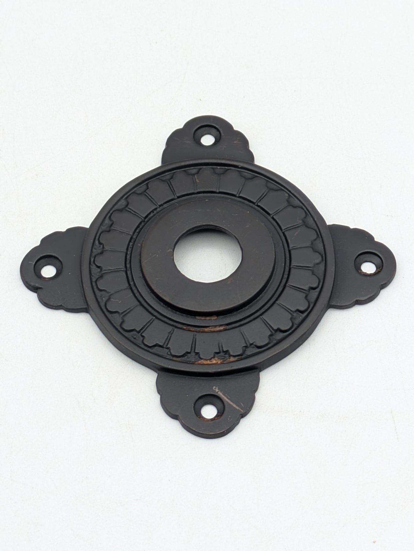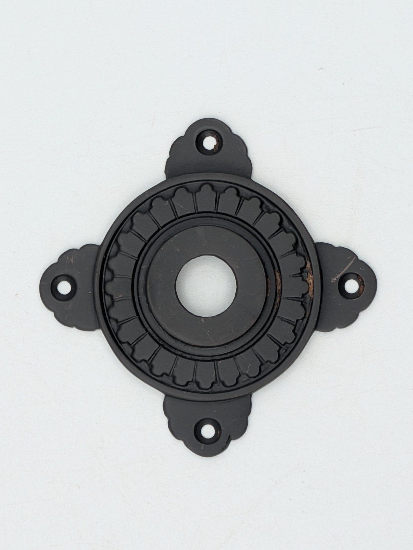 These rosette plates measure approximately 3 3/4 inches point to point. . Sold individually.