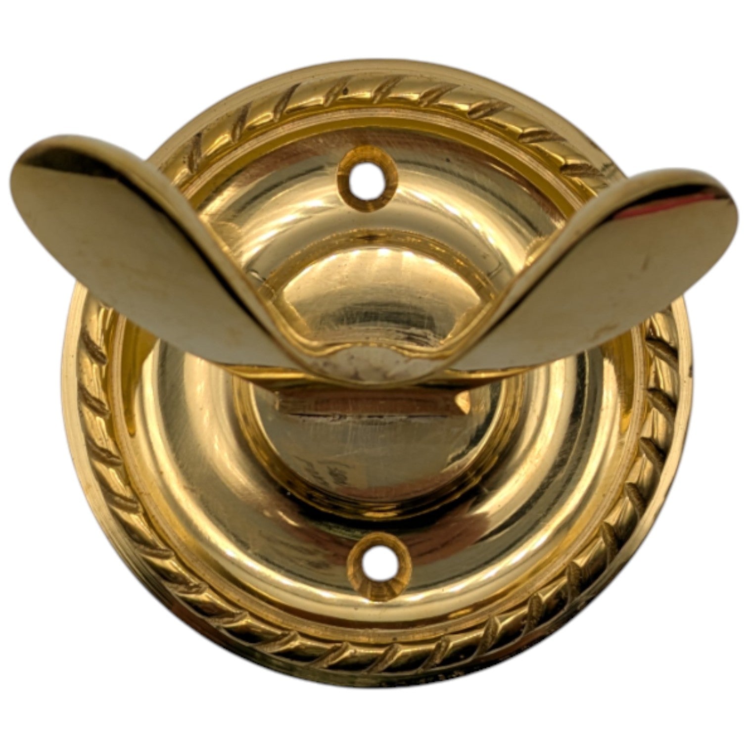 Measures approximately 2 1/2 inch tall and approximately 2 1/2 inch wide with a projection of approximately 2 1/2 inch. Made from solid brass. Comes complete with mounting hardware. The average lead time for this hook is approximately 1 to 2 business days.