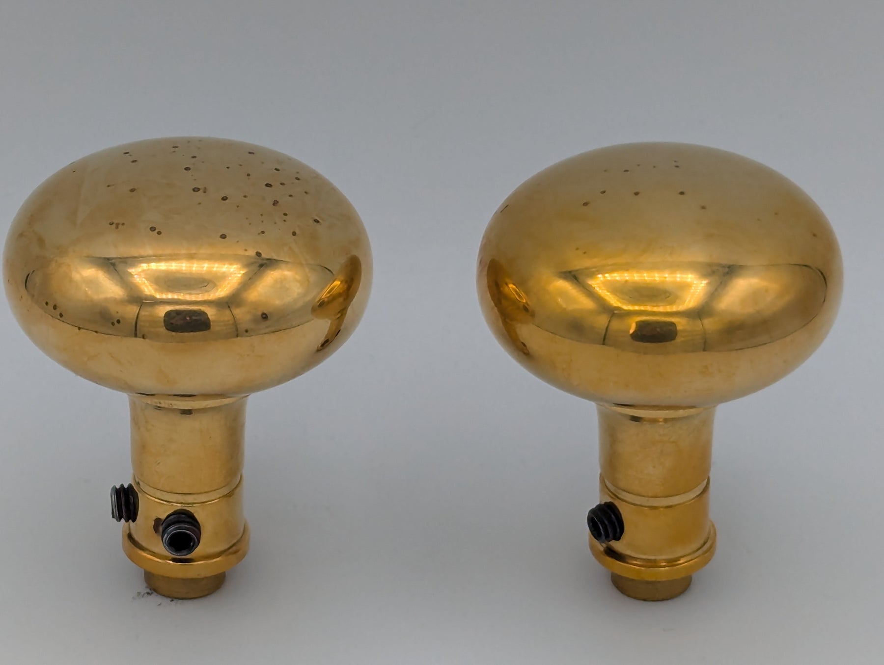 Each knob measures approximately 2 1/5 inch diameter. The spare door knob set includes two knobs and a passage spindle.