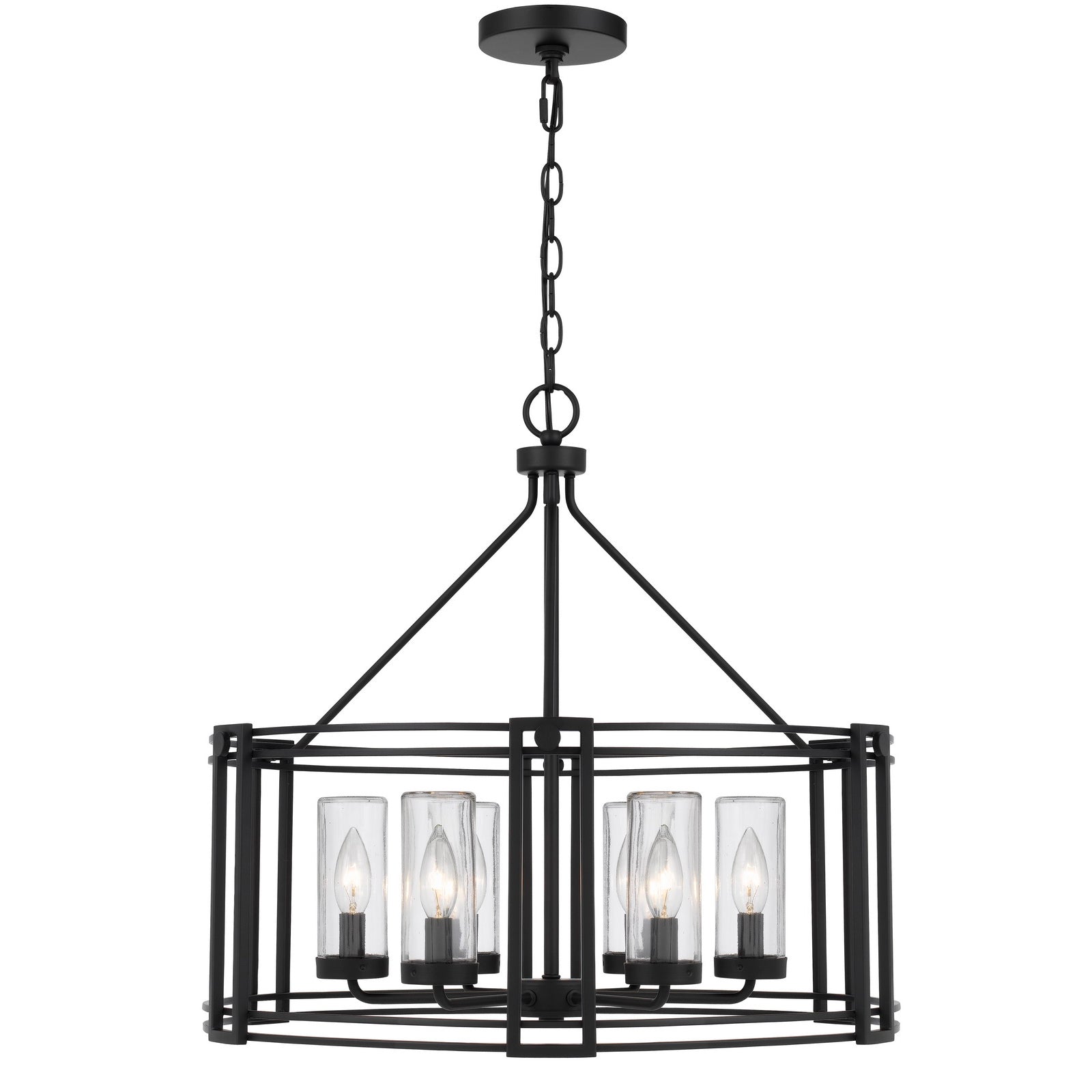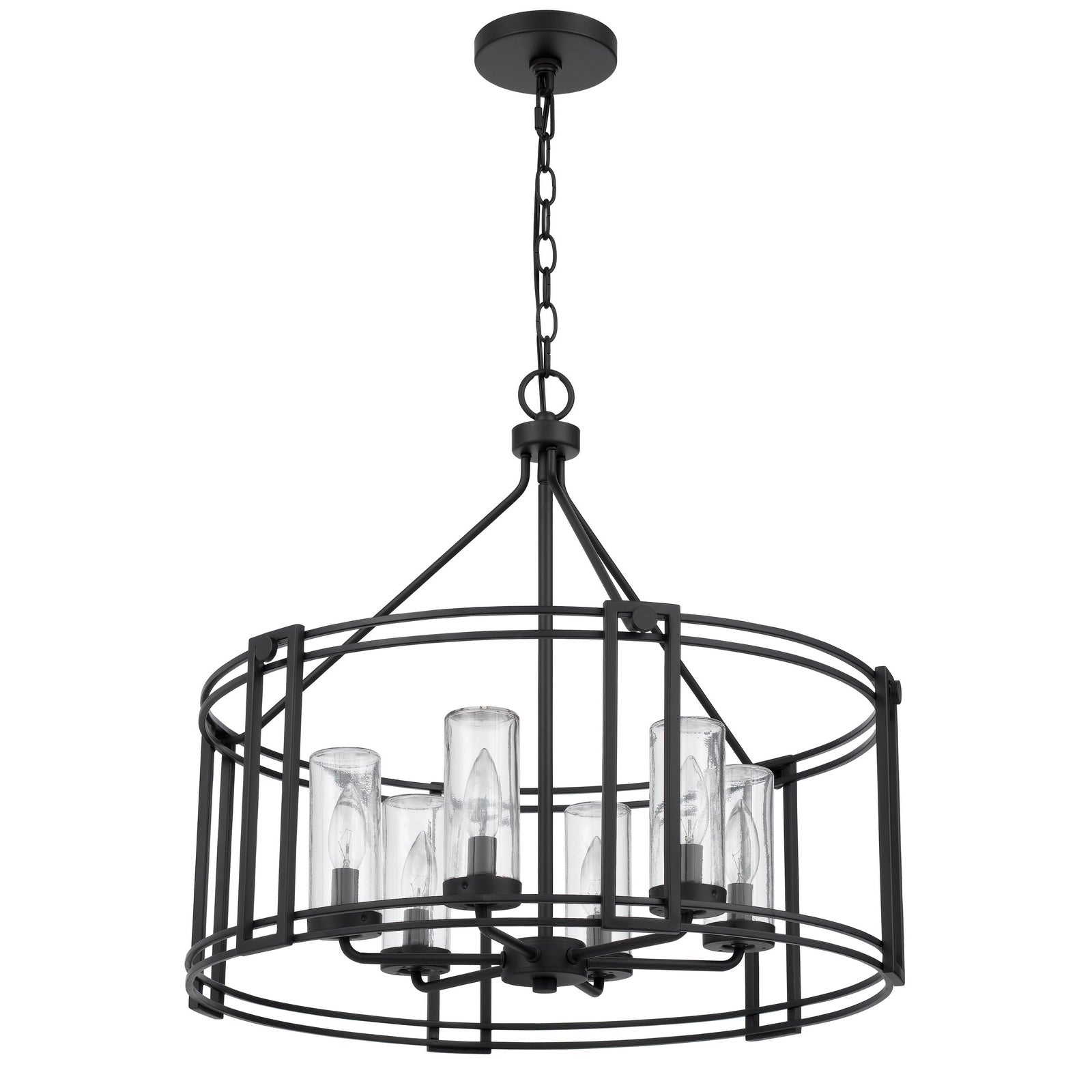 The Luton Cage Metal Chandelier (Product No. FX-3777-6) is a stunning addition to any décor, featuring a durable iron construction with a matte satin finish. This stylish chandelier boasts a circular cage design complemented by clear cylinder glass shades, providing an elegant light source for your space. It includes 6 feet of chain for versatile hanging options and comes with a canopy for easy hardwired installation. Designed to accommodate six E12 base bulbs (not included) with a maximum wattage of 60W each, this fixture ships in one carton and requires minor assembly. With its robust construction and attractive design, the Luton chandelier is perfect for elevating your home's ambiance.