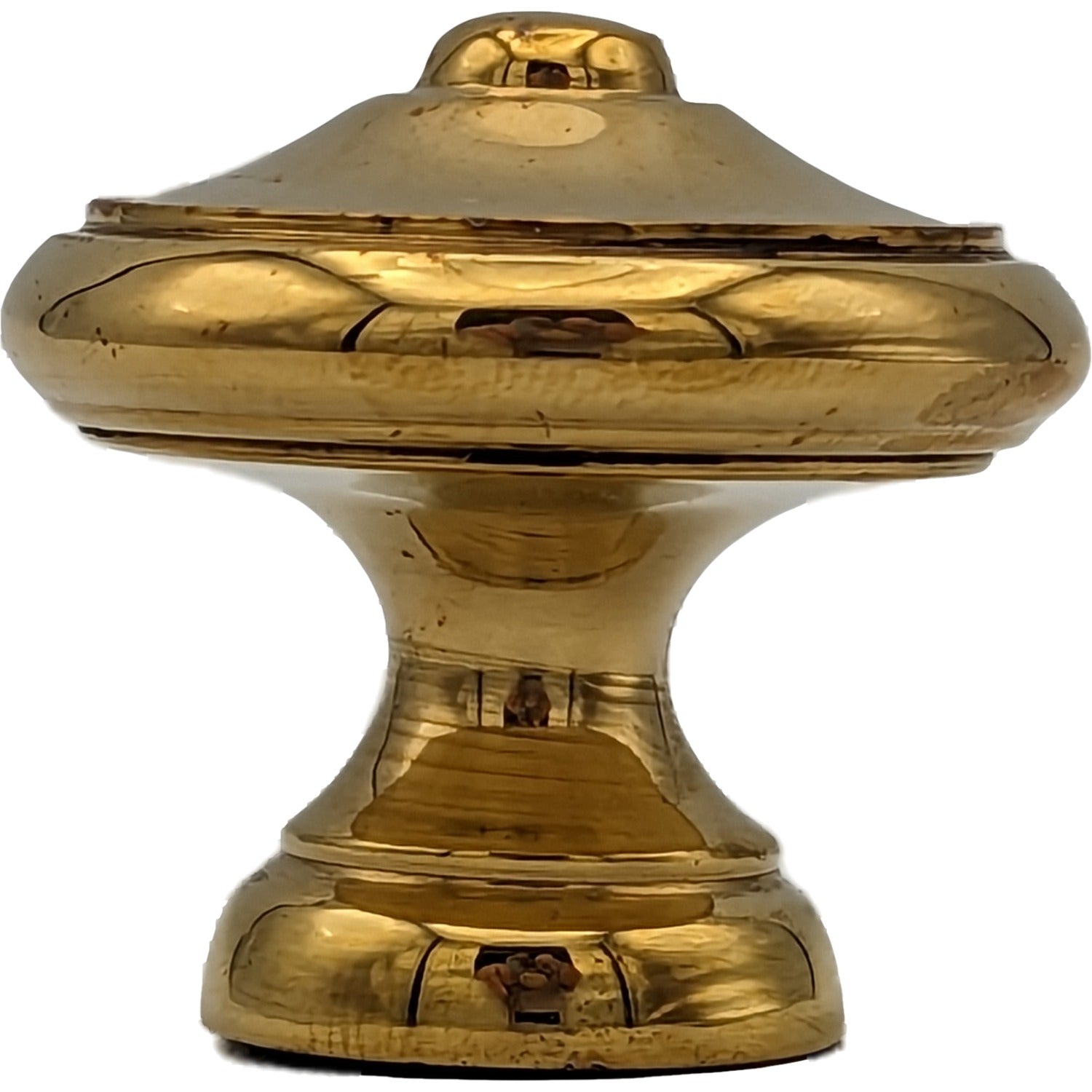 This simple Colonial style knob will add a classic touch to your cabinets and drawers. Measures 1 1/4 inch in diameter with a projection of 1 inch. This product is available in several other finishes and comes complete with mounting hardware. Available in several different finishes including polished brass, antique brass and Black Bronze.