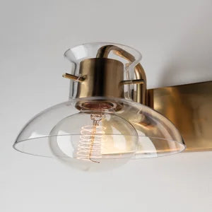 The Riley Wall Sconce by Mitzi offers a sophisticated lighting option with a contemporary flair. This elegant sconce features a clear glass shade and accommodates two E26 medium base bulbs, each with a maximum wattage of 60W. With dimensions of 14.50 inches in width and 7.00 inches in height, and a 7.75-inch extension, it enhances any space effortlessly. Available in two stunning finishes—Aged Brass and Polished Nickel—this fixture is rated for UL Damp locations, making it ideal for humid areas like bathrooms.