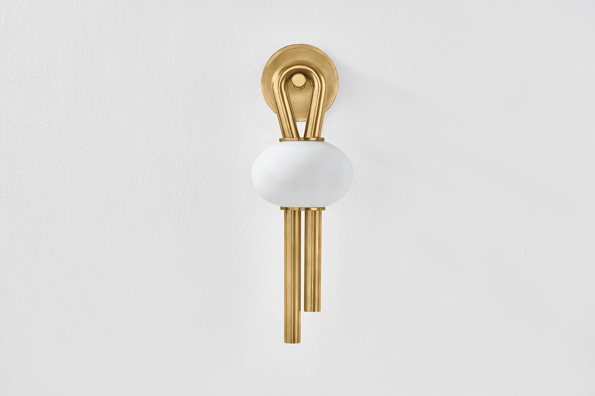 The Corbett Lighting sconce in Vintage Brass brings an elegant touch to any space. This beautifully designed piece features a sleek glass shade and requires an integrated LED with a maximum wattage of 12.0W, delivering an impressive 425 lumens at a warm color temperature of 2700K and a high CRI of 90. It measures 7.25 inches in width, 20.75 inches in height, and has a 7.75-inch extension, making it perfect for adding ambiance in hallways or living areas. Note that this fixture is not Title 24 compliant and is not field serviceable, but its stylish finish and efficient lighting make it a stunning choice.