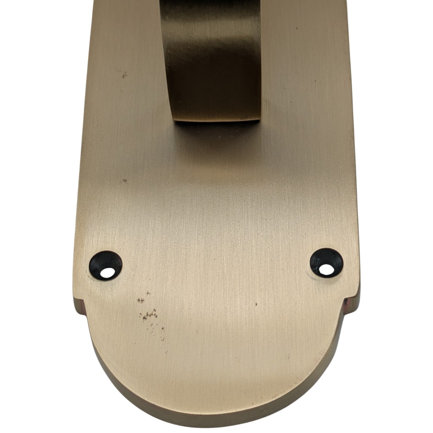 Measures 2 1/2 Inches wide by 12 Inches tall. Projection of 2 1/4 Inches with a Pull length of 6 3/8 Inches. Solid Brass construction for decades of service. Comes complete with mounting hardware. Available in antique brass. The average lead time for this pull & plate is approximately 5 to 10 business days.