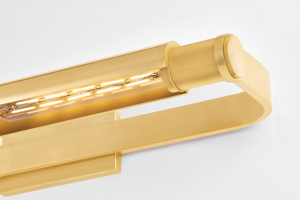 The Elm Park Wall Sconce by Hudson Valley Lighting is a striking blend of style and functionality. This fixture features two E26 medium base sockets, supporting a maximum wattage of 15W per bulb (bulbs not included). With a width of 24.00 inches and a height of 3.00 inches, it projects elegantly with a 7.50-inch extension, while the top-to-center measurement stands at 1.50 inches. Available in sophisticated finishes including Aged Brass and Aged Brass/Distressed Bronze, this sconce is UL Damp rated, making it suitable for a variety of indoor spaces, especially humid areas.