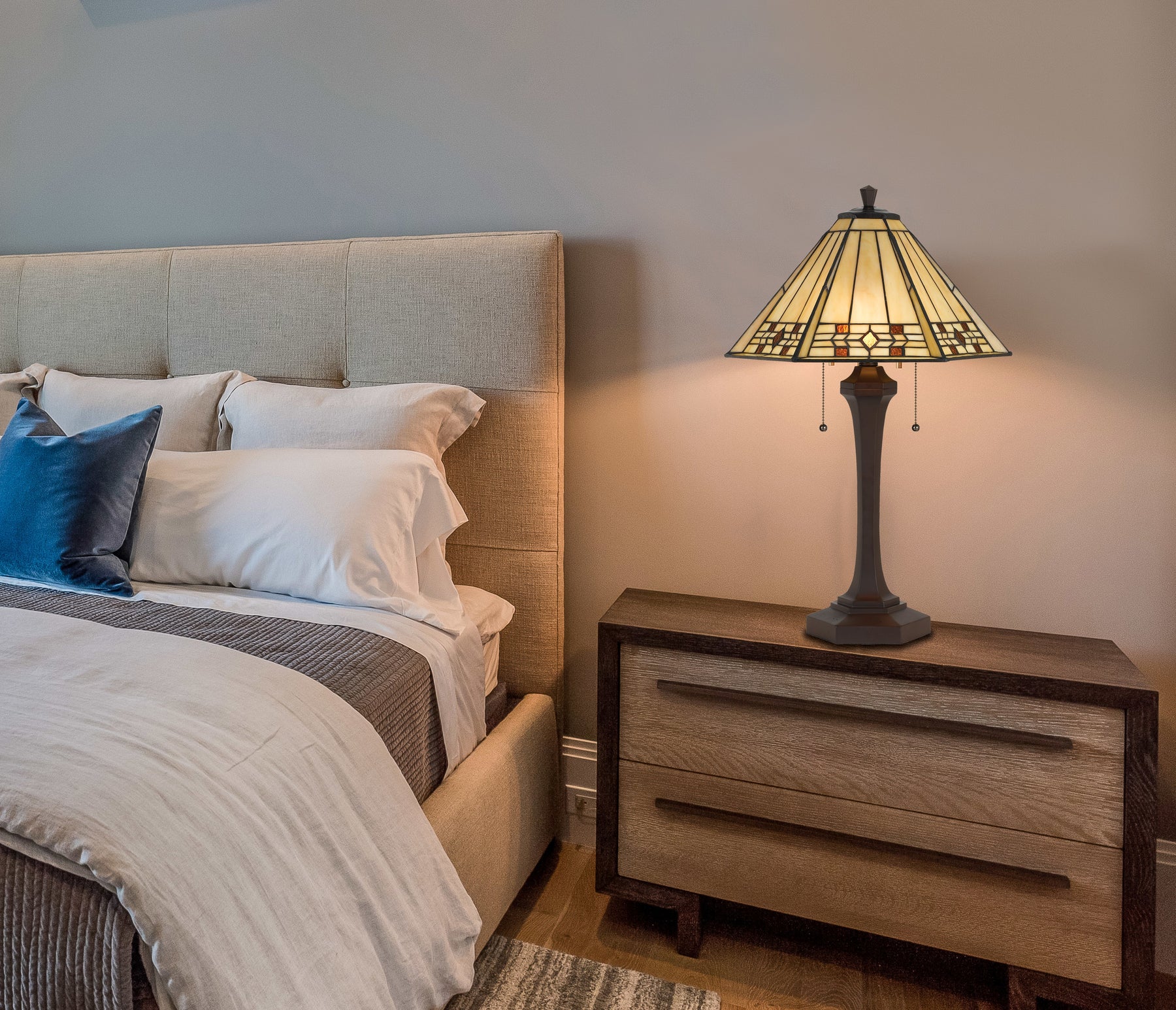 The BO-2676TB Tiffany Table Lamp is a stunning addition to any room, combining durability and elegance. With a height of 26 inches, this lamp features a robust resin construction in a sleek matte black finish, complemented by a beautiful stained glass Tiffany shade. It provides dual lighting options with its double socket style, requiring two E26 base bulbs, each with a maximum wattage of 60W. The convenient pull chain mechanism allows for easy operation, making it both functional and stylish. This lamp ships in one carton and requires assembly, providing a perfect balance of sophistication and practicality.