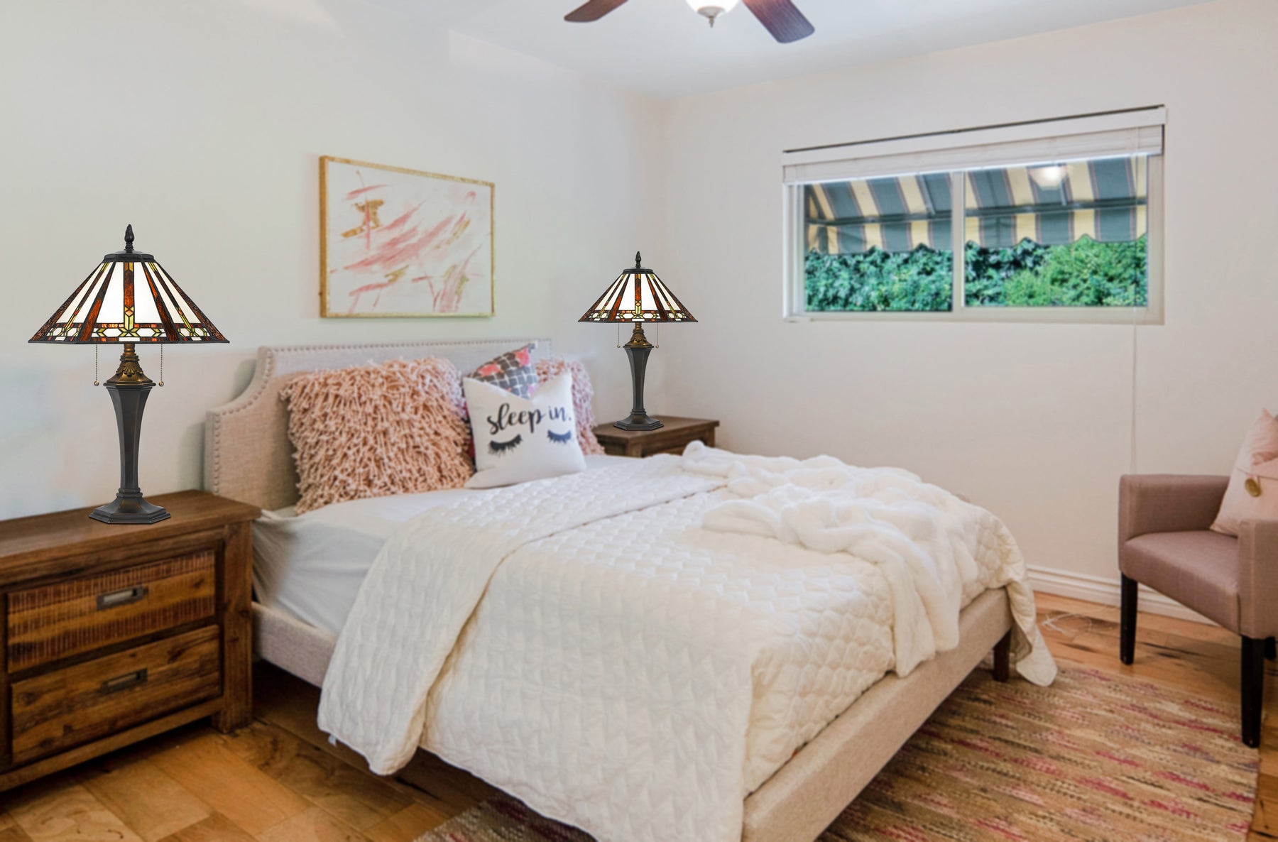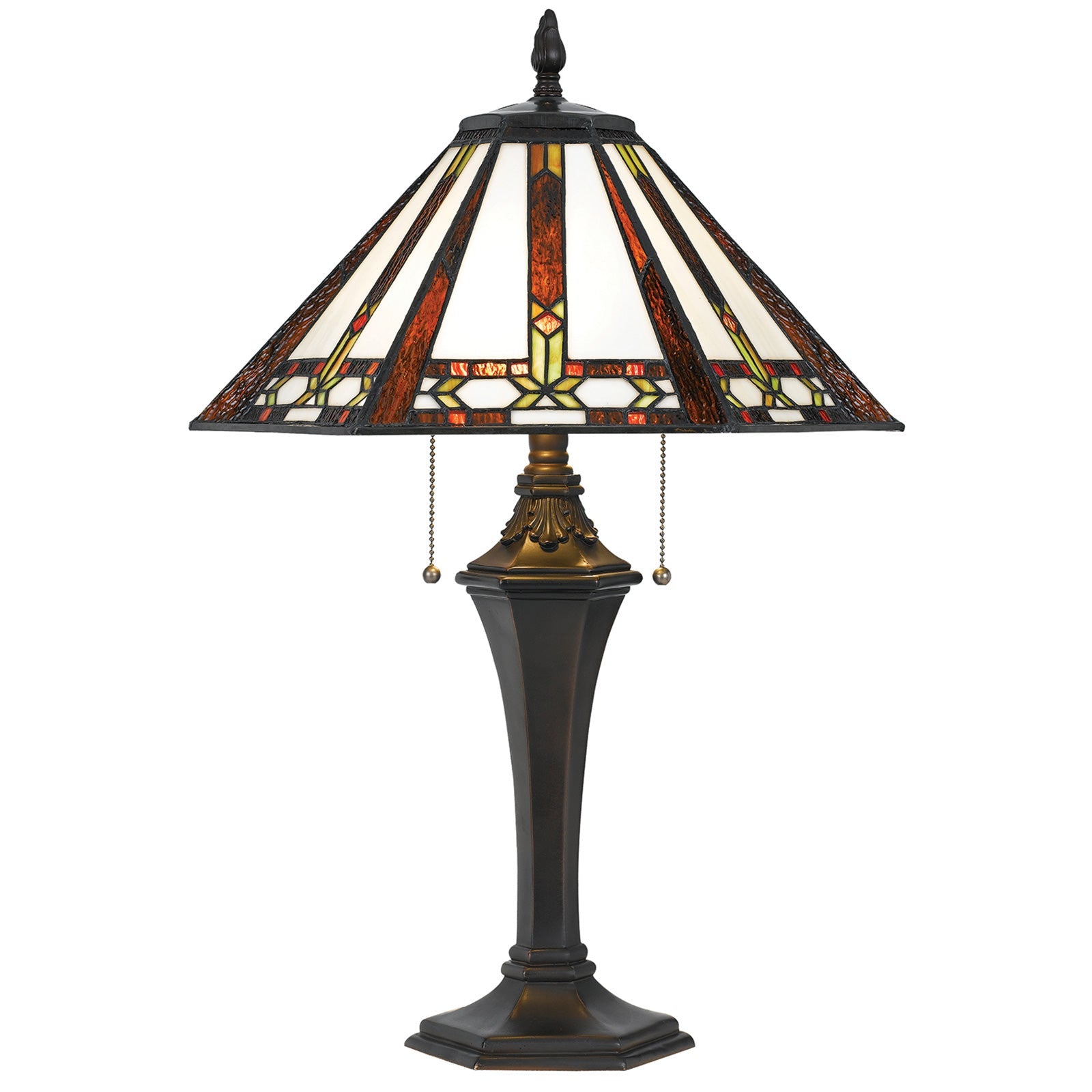 The BO-2717TB Tiffany Table Lamp is a stunning addition to any space, boasting a durable resin construction for long-lasting use. This lamp features a functional double pull chain for easy operation and includes a colorful stained glass Tiffany shade that adds a touch of elegance. With two 60W lights and an on/off switch, it provides ample illumination. The lamp ships in one carton and requires assembly. It measures 20.50 inches in length, 10.50 inches in width, and 22.80 inches in height. Backed by a one-year warranty, this charming lamp is perfect for enhancing the ambiance of your home.