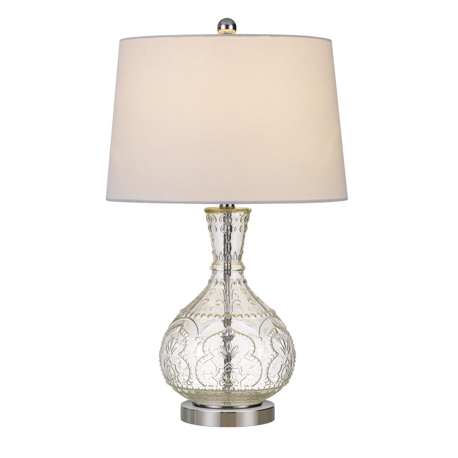 150W NADOR GLASS TABLE LAMP WITH TAPER DRUM HARDBACK FABRIC SHADE