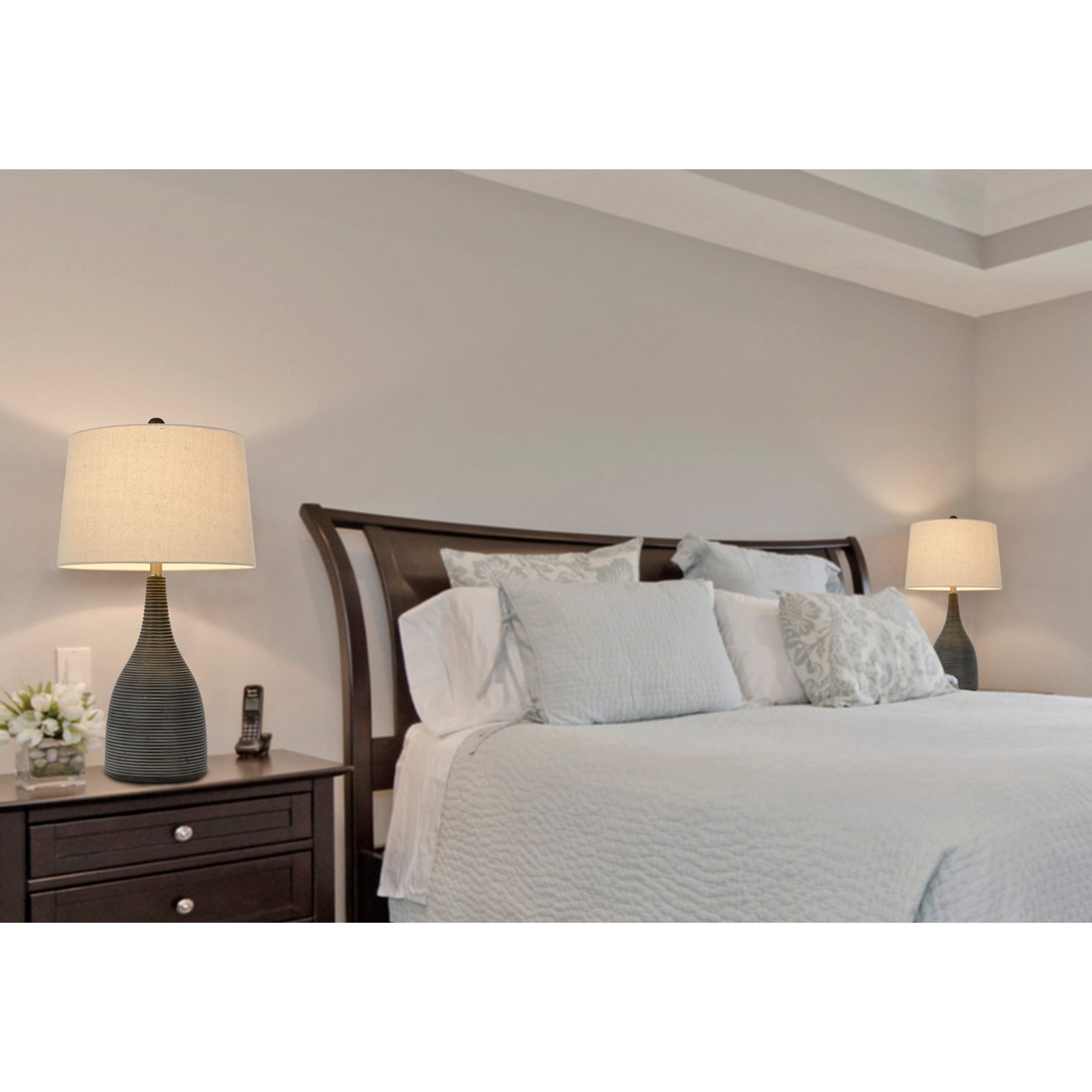 The BO-3063TB 150W 3-way Kaneohe Resin Table Lamp is a perfect addition to elevate your home decor with its eye-catching charcoal finish. Crafted from durable ceramic, it features a weathered finish that enhances its aesthetic appeal while ensuring stability with its wide bottom base. This lamp includes a hardback linen shade, creating a warm ambiance perfect for any room. Designed for convenience, it ships in one carton with little to no assembly required. It accommodates a single E26 bulb and operates on a 3-way switch, providing versatile lighting options.