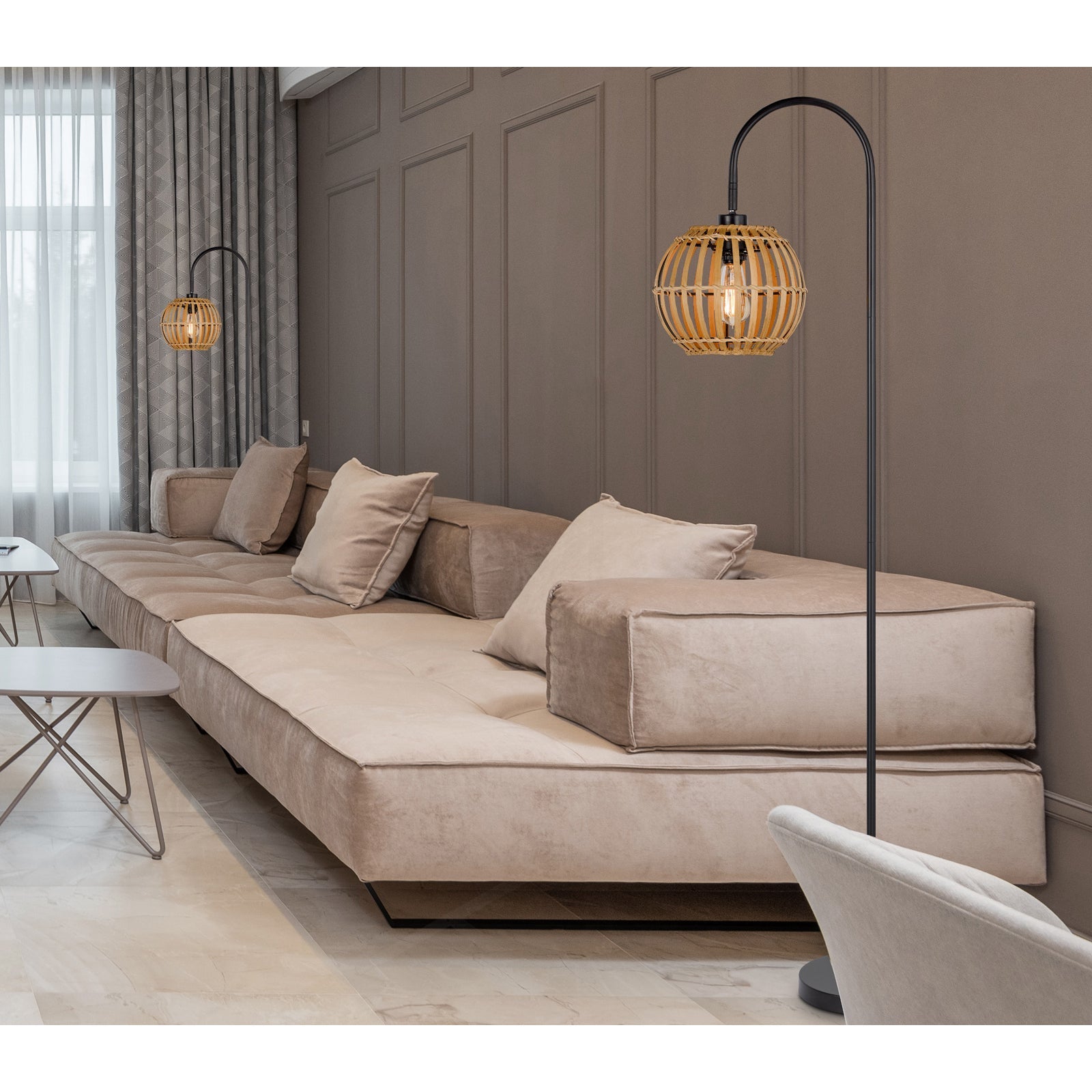 The BO-3079FL 60W Worcrest Downbridge Metal Floor Lamp combines durability and style with its robust metal construction and elegant bamboo circular shade. This versatile lamp features a weighted base for added stability and an adjustable shade, making it perfect for illuminating any space. It includes one E26 bulb base compatible with up to 60W wattage. Measuring conveniently for various room settings, the lamp ships in one carton for easy assembly and is backed by a one-year warranty against defects in material and workmanship.