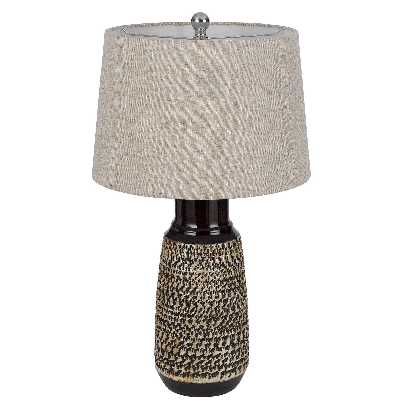 The BO-3086TB-2 Scottsboro ceramic table lamp is a stylish and durable lighting solution for any space. With a wattage of 150W, this lamp features a three-way switch and comes with two soft burlap shades that add a warm touch to your decor. Its ceramic construction boasts a ceramic glazed finish and a texturized antique silver appearance. Measuring 16 inches in length and width, with a height of 18.5 inches, it is shipped in one carton and does require assembly. This lamp is sold as a pair, making it perfect for enhancing the ambiance in living rooms or bedrooms while ensuring a cohesive look.