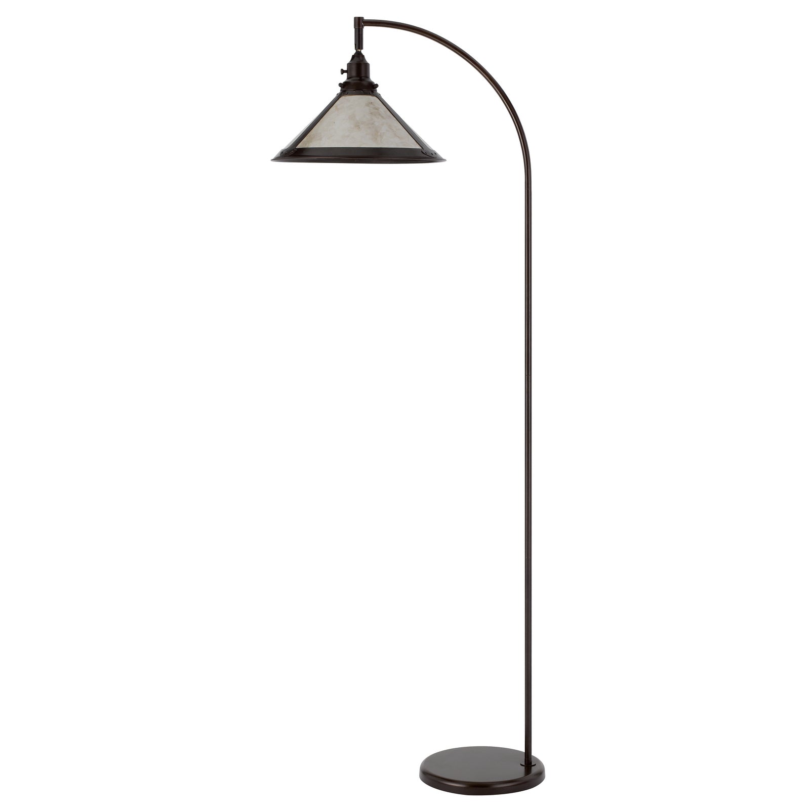 The BO-3122FL-BZ is a 60W downbridge adjustable metal floor lamp that combines functionality with stylish design. Constructed with durable metal, this lamp features a natural compressed mica shade that adds warmth to any space. The weighted base ensures added stability, while the convenient on/off switch located on the socket provides ease of use. Measuring 23.50 inches in length, 17.00 inches in width, and 9.50 inches in height, it ships in one carton and requires assembly. With a one-year warranty, this lamp is perfect for refreshing your décor with its elegant dark bronze finish.
