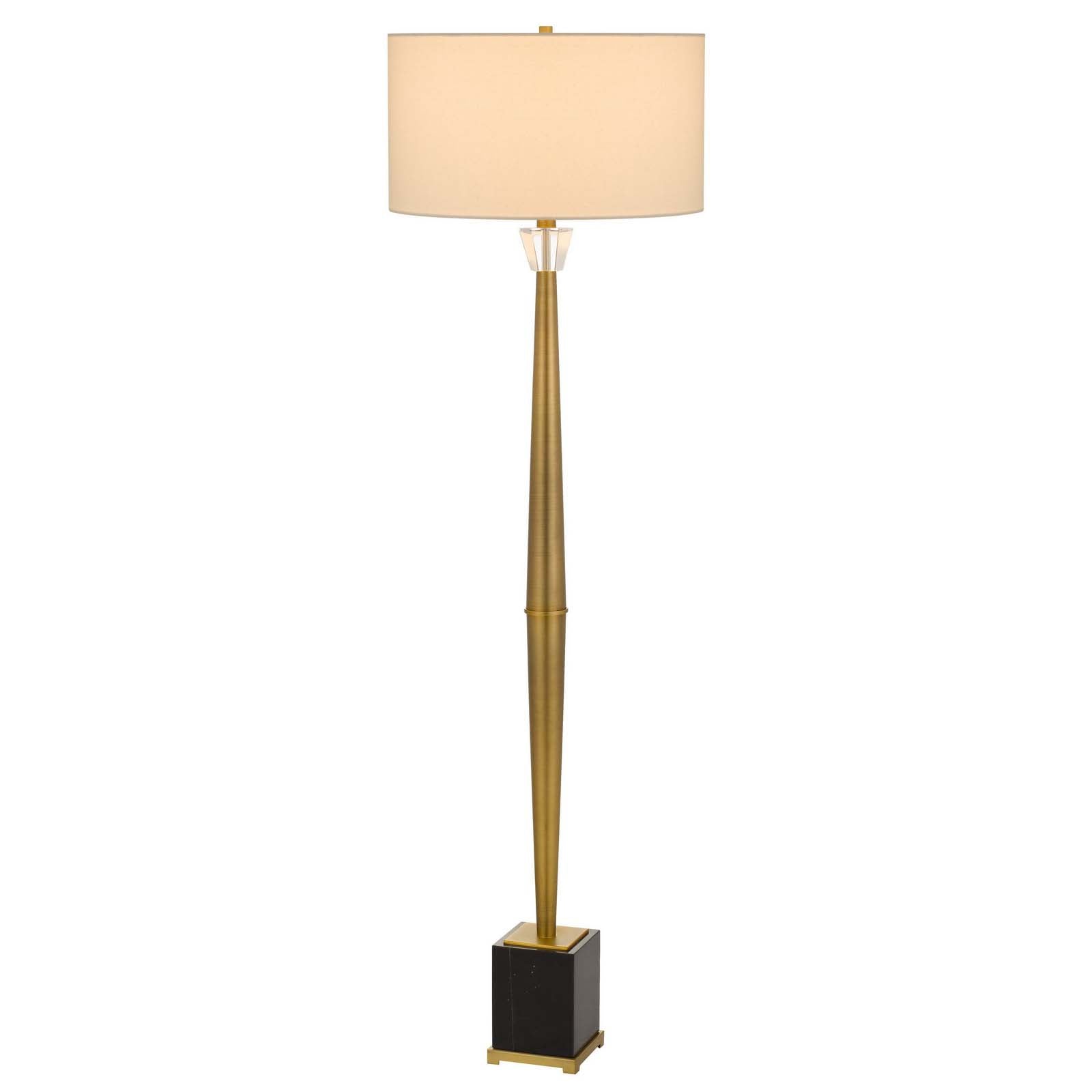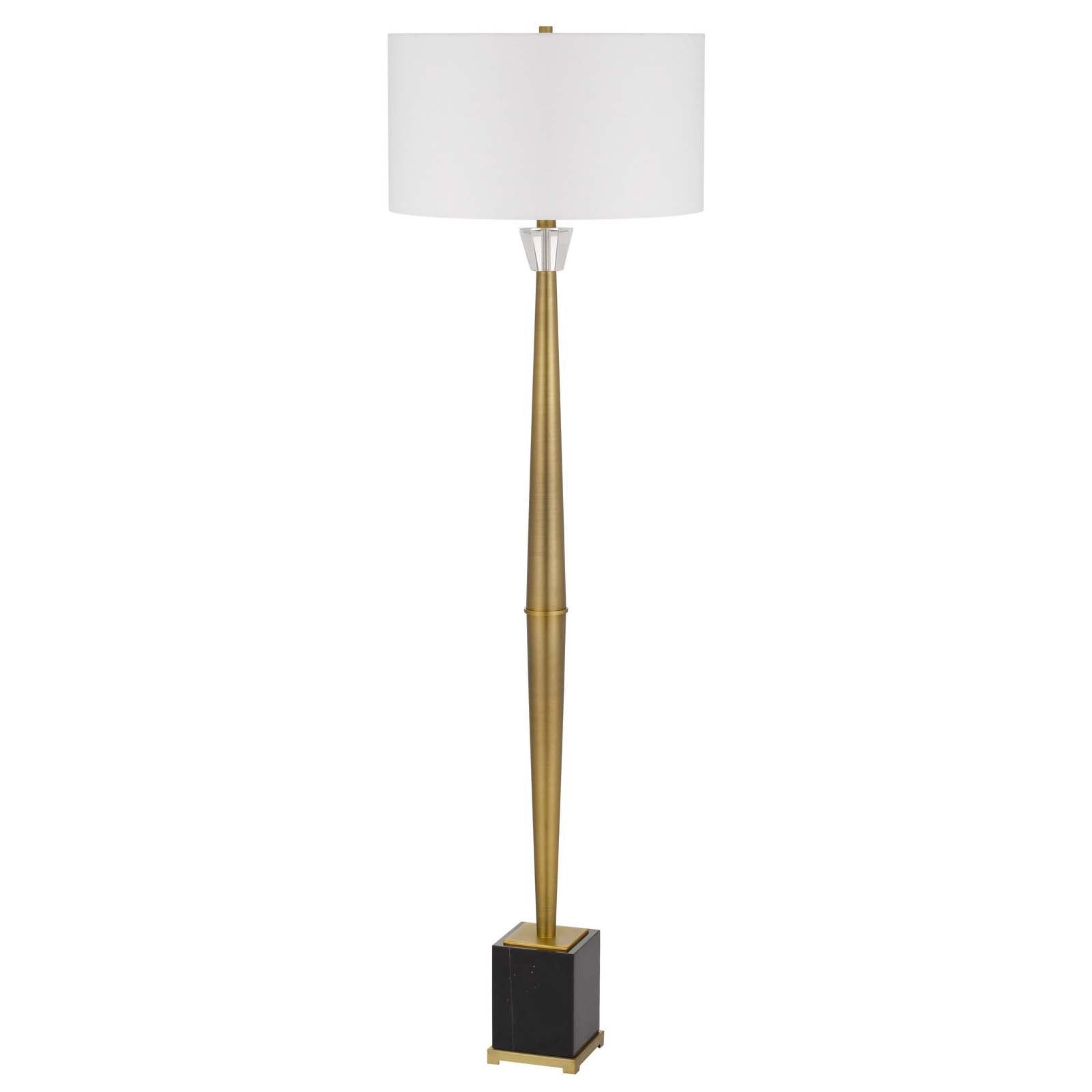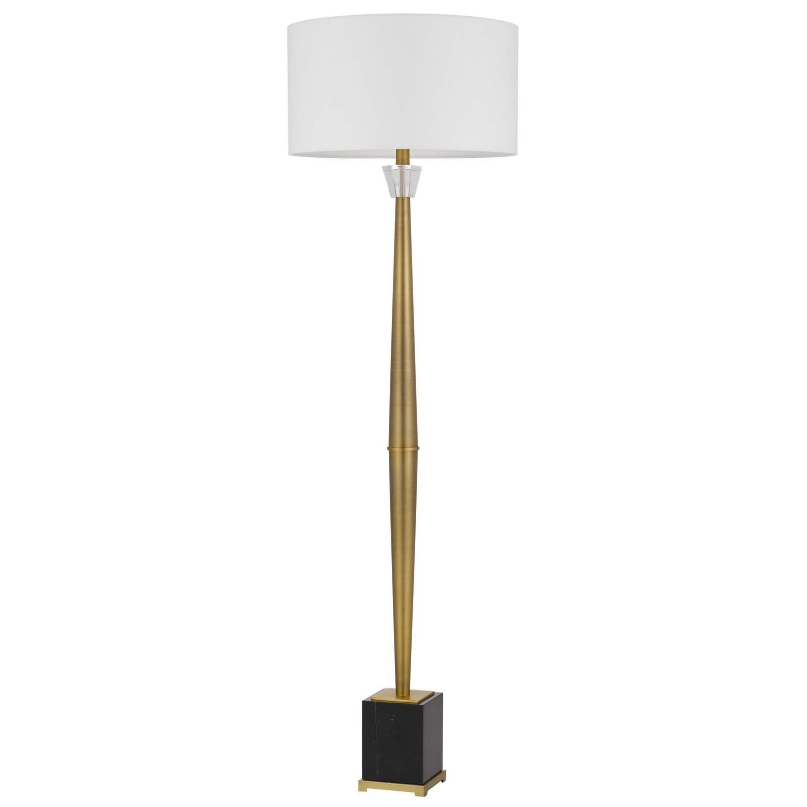 The BO-3157FL Salford Metal Floor Lamp is a sophisticated lighting solution that boasts a durable metal construction and an eye-catching design. With a maximum wattage of 150W, this lamp features a stylish antique brass body complemented by exquisite crystal accents. Its weighted solid marble base ensures stability, while the hardback drum fabric shade provides a warm glow to any space. Measuring 32.00 inches in length, 20.00 inches in width, and 19.00 inches in height, it ships in one carton and requires little to no assembly. The rotary switch on the socket offers convenient operation, making it an excellent choice for enhancing your living room, office, or bedside.