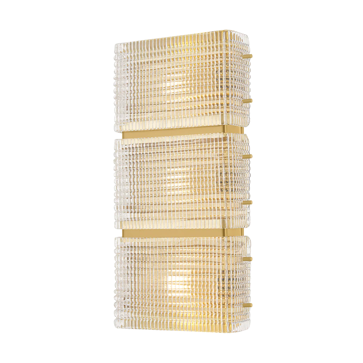 Taking inspiration from retro glass blocks, the Mav sconce puts a contemporary spin on a playful motif. With a shallow profile, the vertically stacked square design is marked by intricate cut crystal details. The highly textured clear piastre glass beautifully reflects and refracts light, creating a striking visual effect when lit. Mav is available with 3 or 5 lights to make a statement in modern interiors.