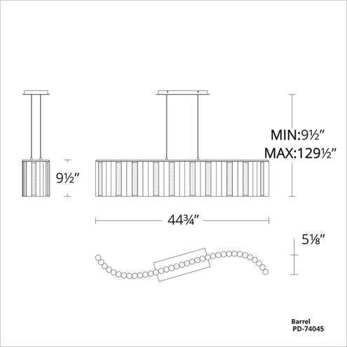 A contemporized mid-century inspired luminaire featuring geometric aged brass finished cylinders. This innovative design set in a wave suggests movement when viewed from various angles for a gracious statement over a long table or as room dividers when displayed in multiples at upscale establishments. Energy-efficient integrated LED's provide a long-lasting maintenance-free bright and even illumination.