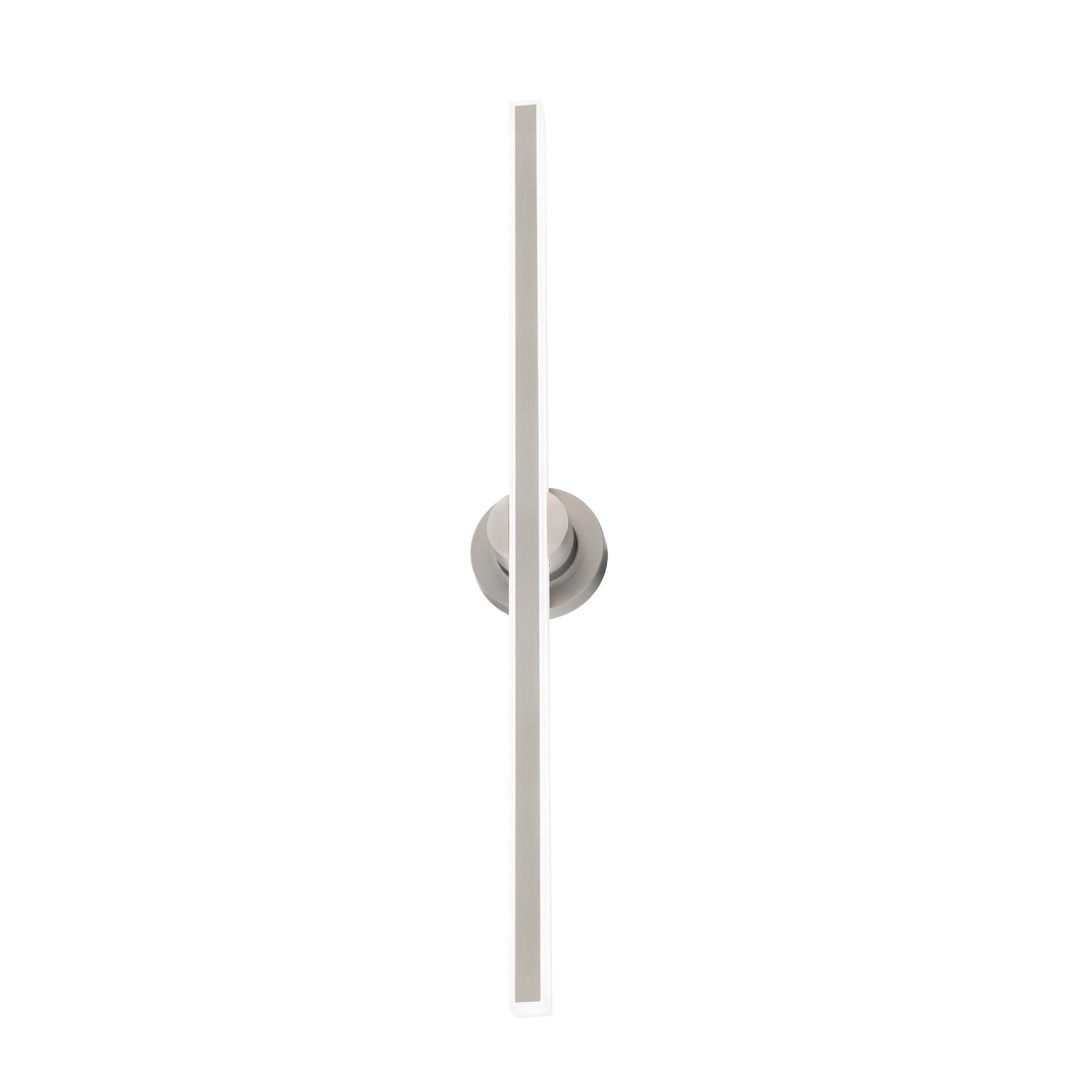Bastone 36in LED Bath Vanity & Wall Light 2700K in Brushed Nickel. A simple rectangle radiates from LED illumination. This seamless design presents a sharp visual style. Featuring a die cast aluminum body with frosted acrylic diffuser ADA Compliant 120V AC LED Technology - no driver or transformer required. Easily fits on a pancake junction box. 277V or 240V options available by special order. Smooth and continuous dimming with an electronic low voltage (ELV) or TRIAC dimmer. High Powered Replaceable LED with CRI: 90, Rated Hours: 50,000, Color Temp: 2700K-3000K-3500K-4000K Adjustable Standards: ETL & cETL UL 1598 listed for Damp Locations, ADA Compliant